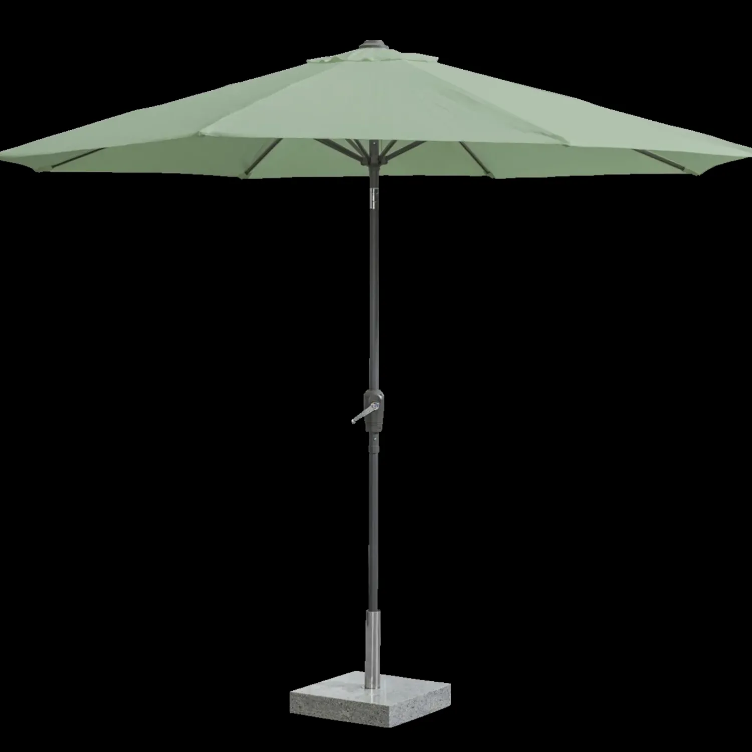 Marienlyst parasol med 38 mm aluminiumsstok, tilt og håndbetjent hejsefunktion.Parasoldugen yder en UV beskyttelse på UV20.