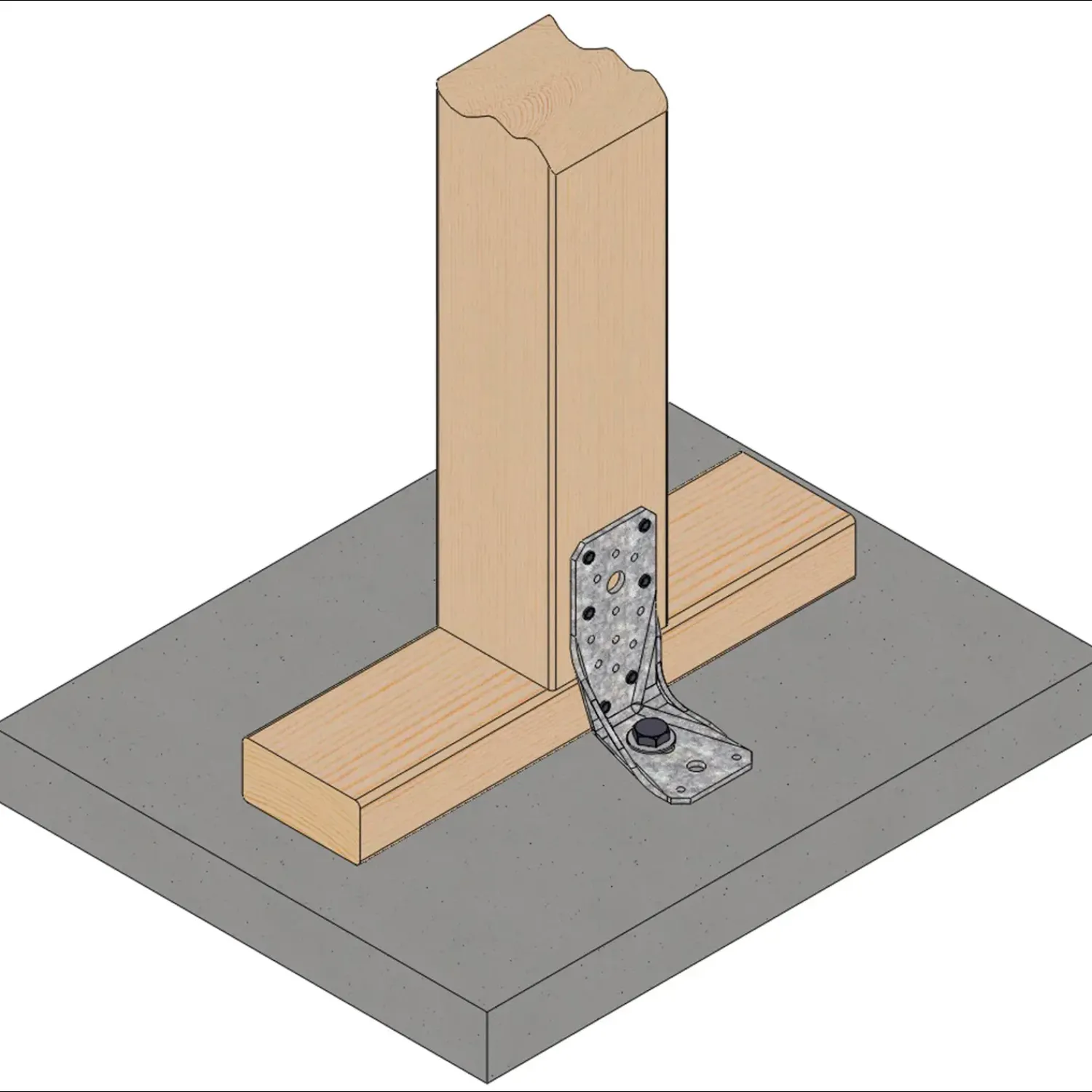 Vinkelbeslag til sammenføjning af træ/beton konstruktioner