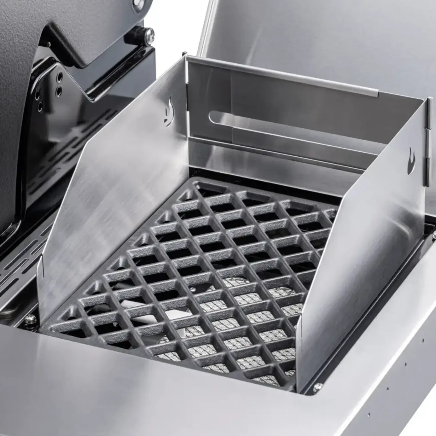 - Beskytter mod vinden for optimalt searing-resultat