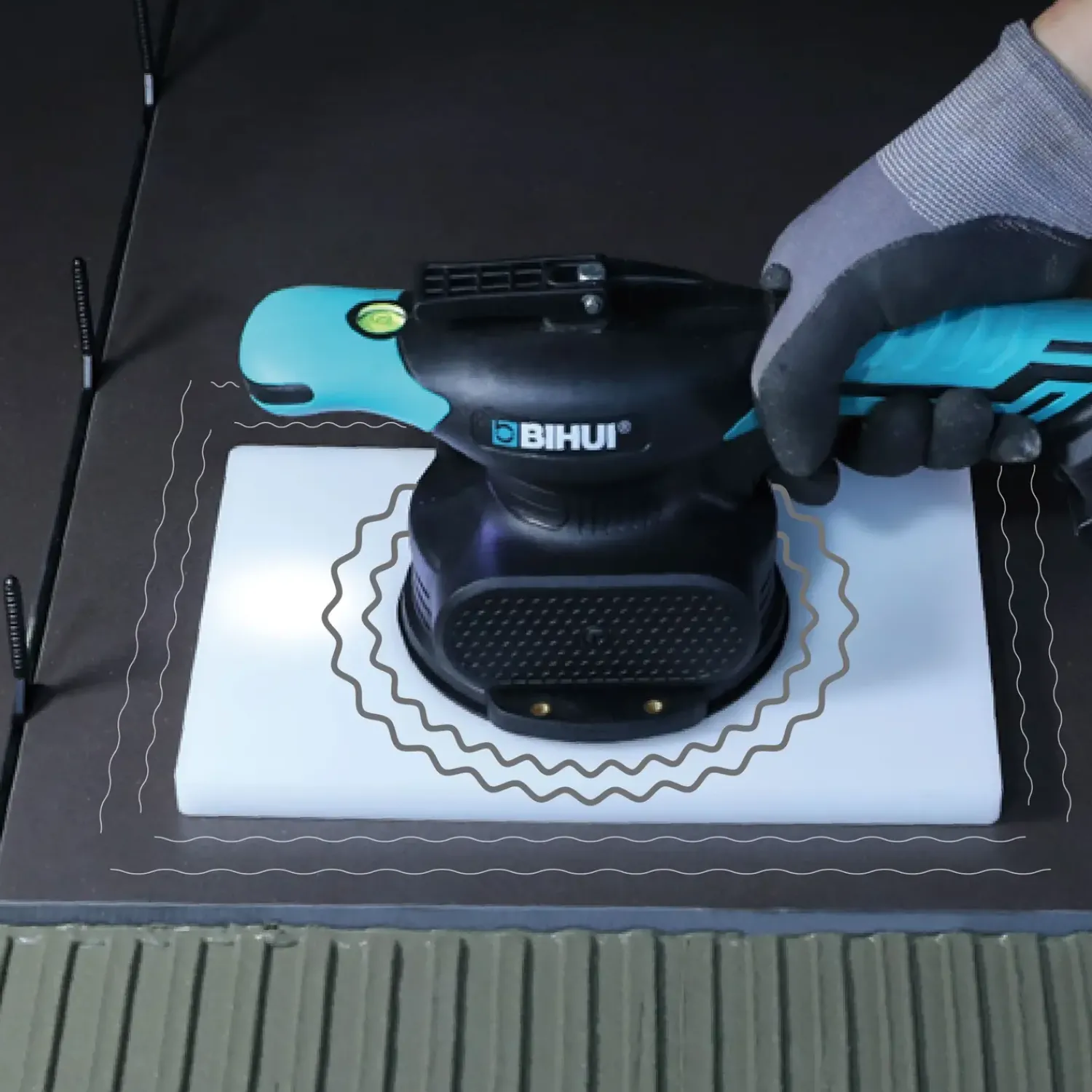Flisevibratoren sikrer den korrekte vedhæftning på fliselimen, da der via vibrationerne bliver fjernet luft under flisen. Du vil hurtigt kunne nivellere fliserne.