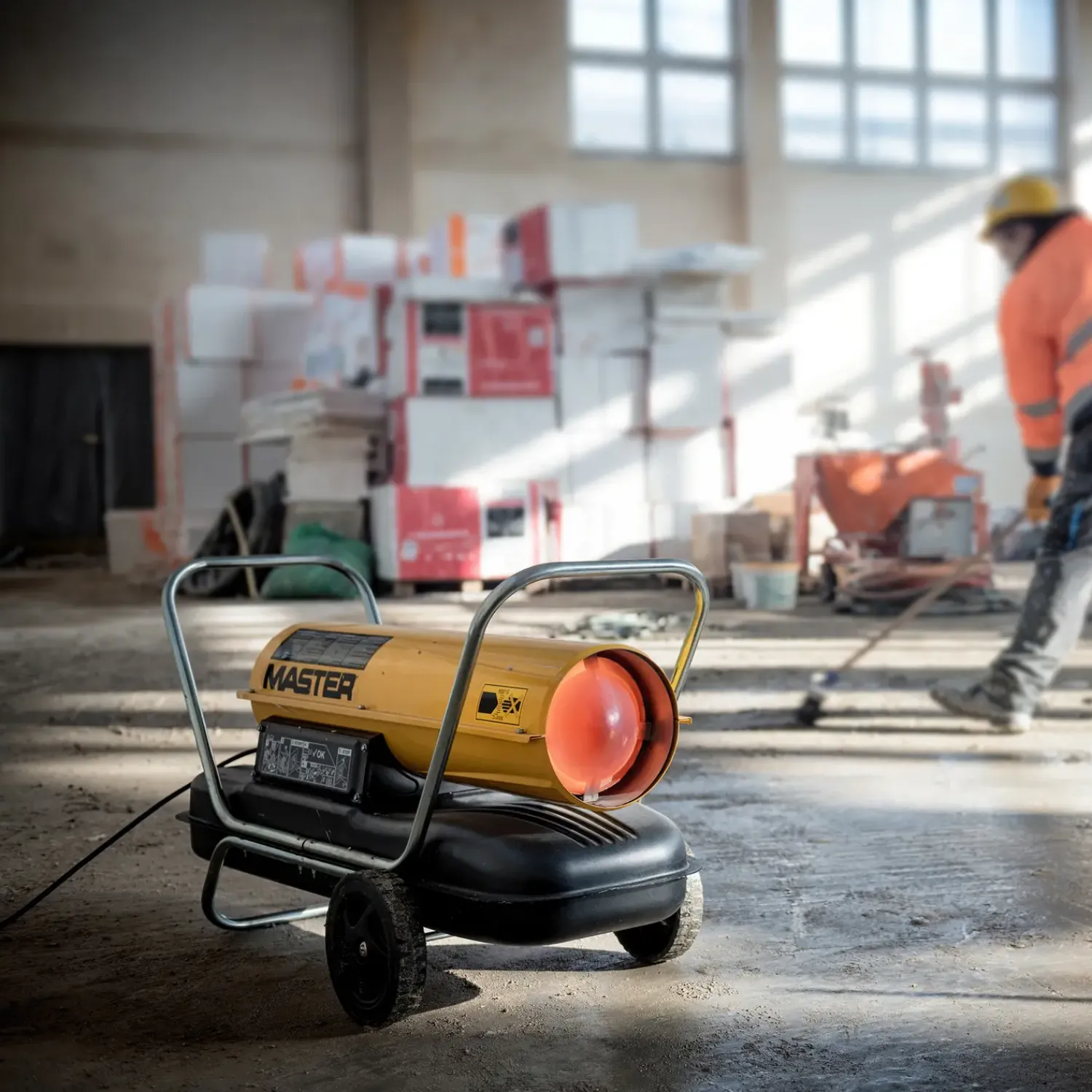 Master varmeluftkanon med direkte fyring giver 100% udnyttekse.