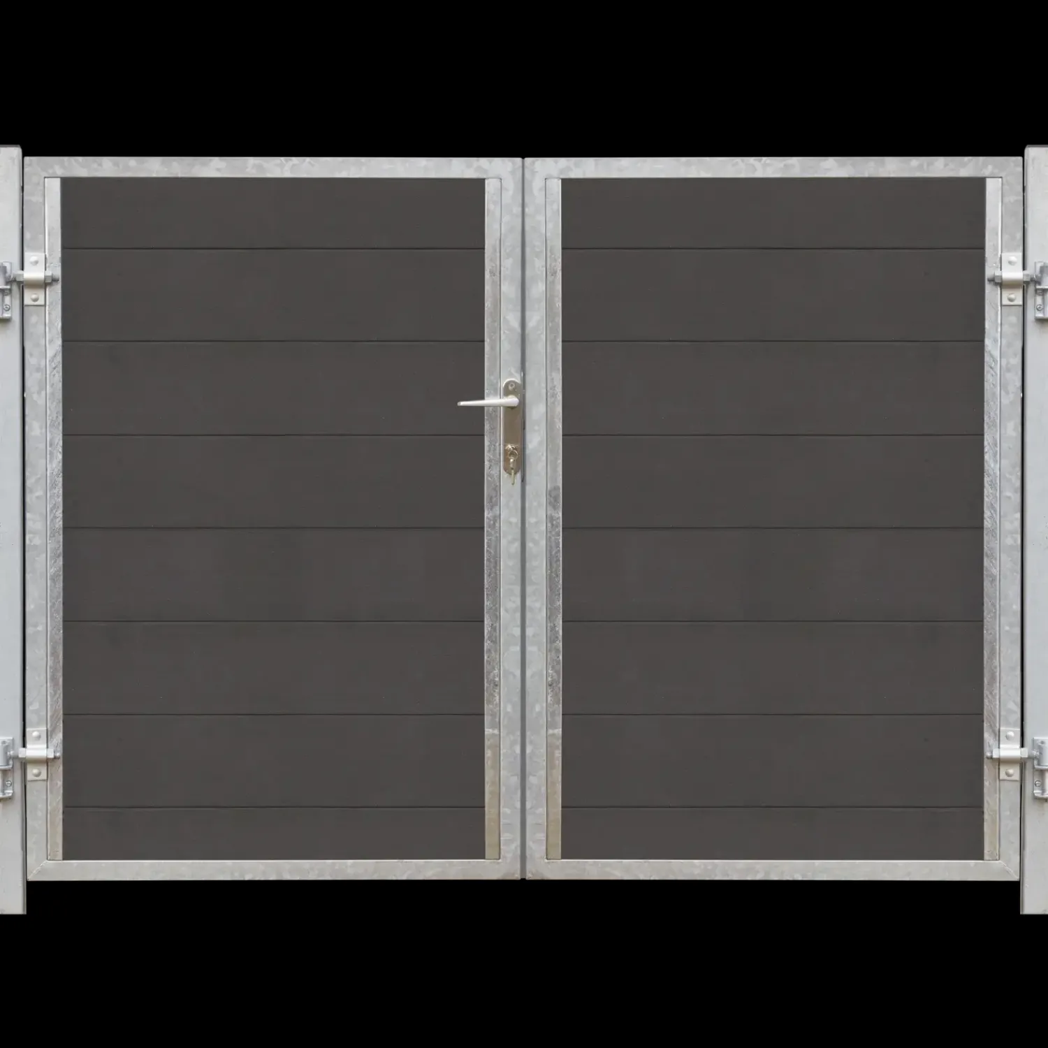 Venstrehængt og indadgående låge med varmegalvaniseret ramme med kompositbeklædning.