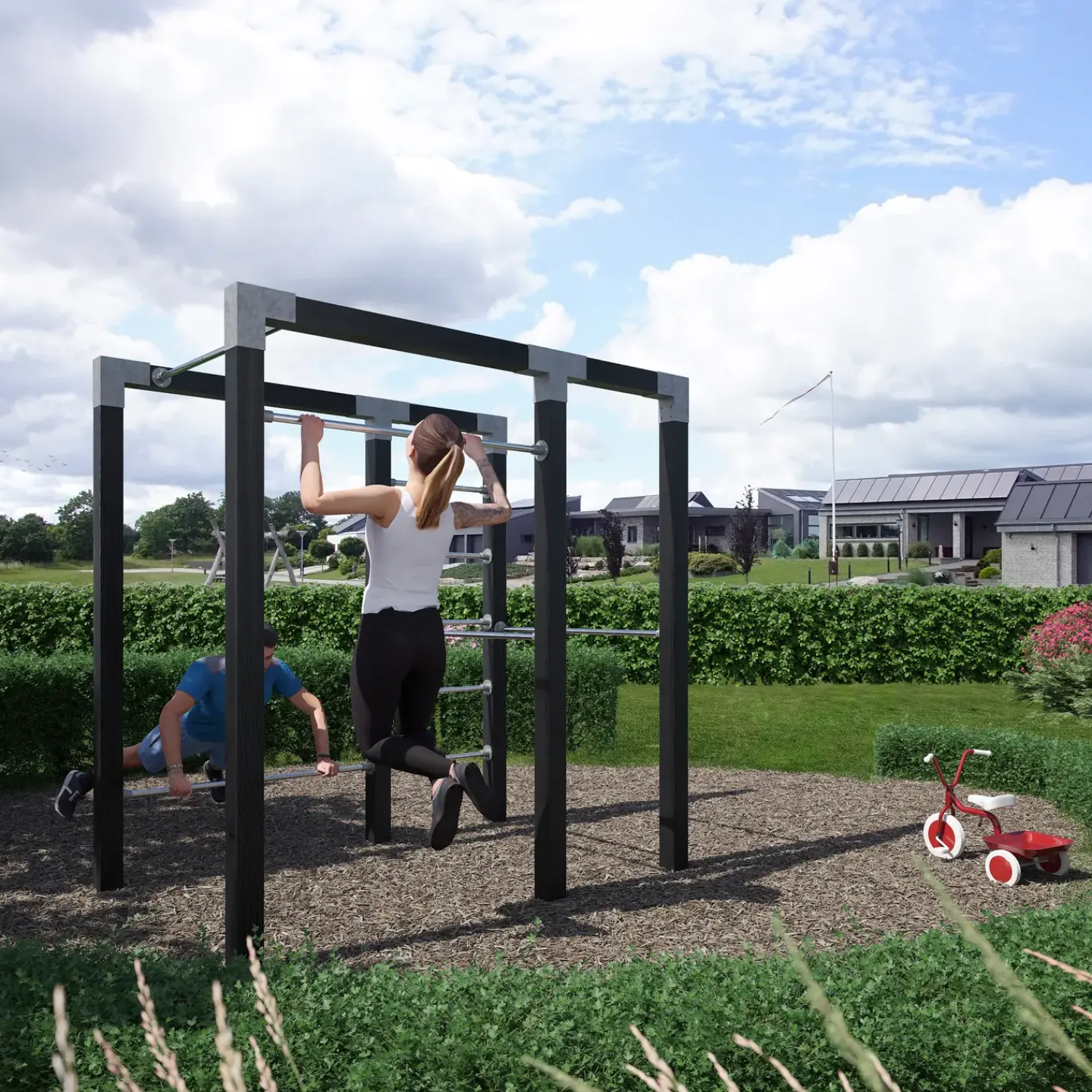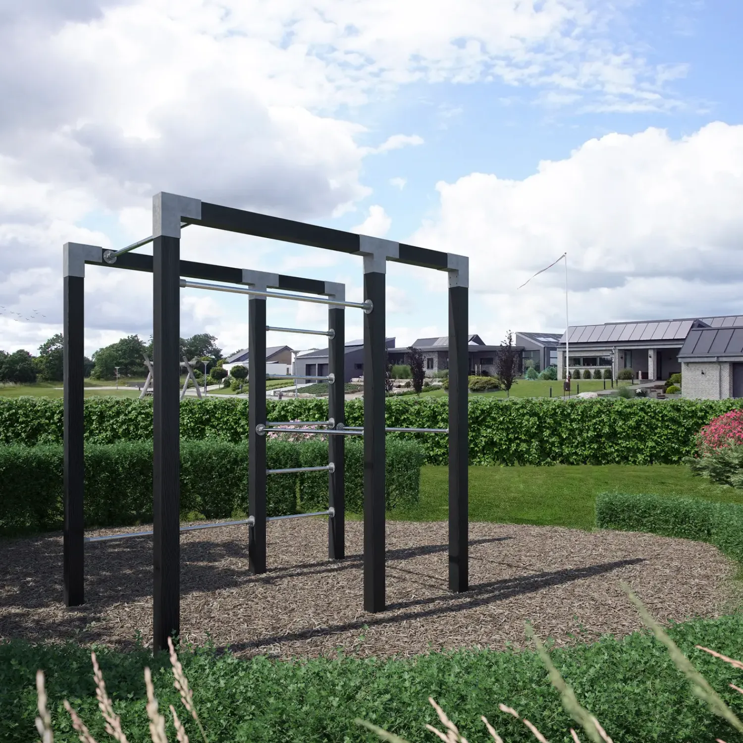 Drømmer du også om at gå ud af havedøren, også er fitness mulighederne åbne? Nu har du muligheden for at få et pænt og minimalistisk outdoor fitness til haven. Det behøver ikke at være besværligt at skulle holde sig i form. Men dette modul, vil du opleve at det bliver en del af indretningen i haven og fremstår dekrokrativt i haven.