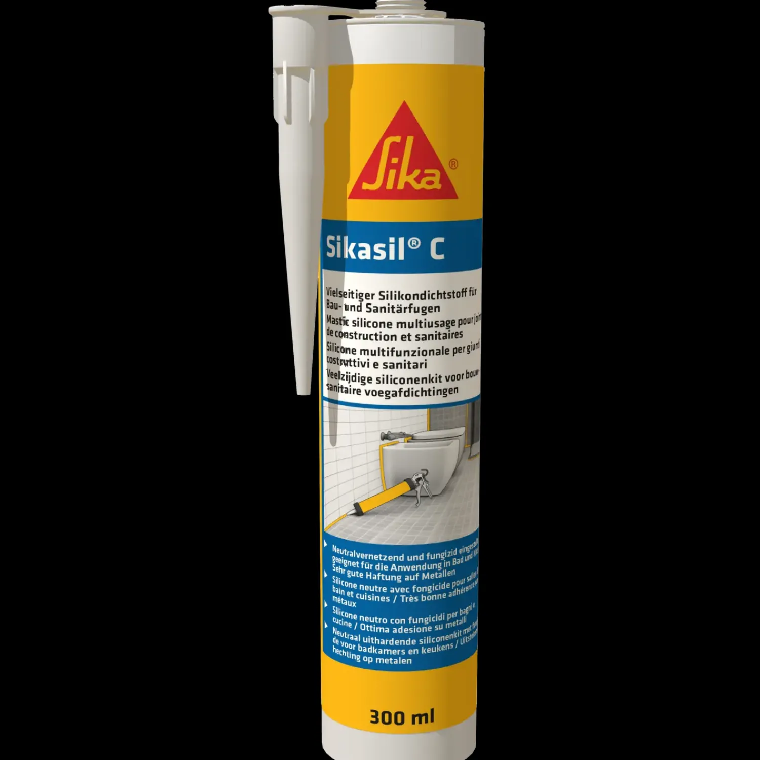 Sikasil® C er en 1-komponent, neutralthærdende, ikke-ætsende multifunktionel elastisk silikonefugemasse til forsegling i byggeriet. Den kan anvendes uden påføring af primer, og den har god vedhæftning til de fleste byggematerialer, samt glas. Giver en elastisk og fleksibel vandtæt forsegling med modstandsdygtighed over for UV-stråler, svamp og meldug. Bevægelseskapacitet ±25 %. Til indendørs og udendørs brug.