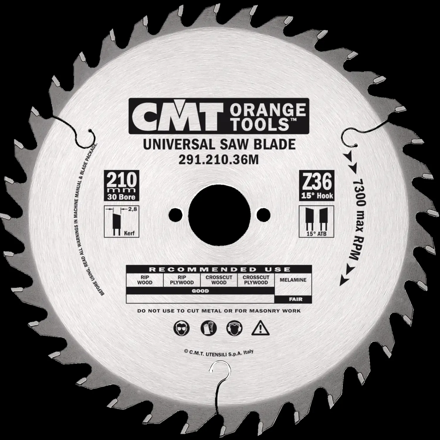 CMT savklinge til flækning og afkortning af blødt og hårdt træ, krydsfiner og lignende materialer.