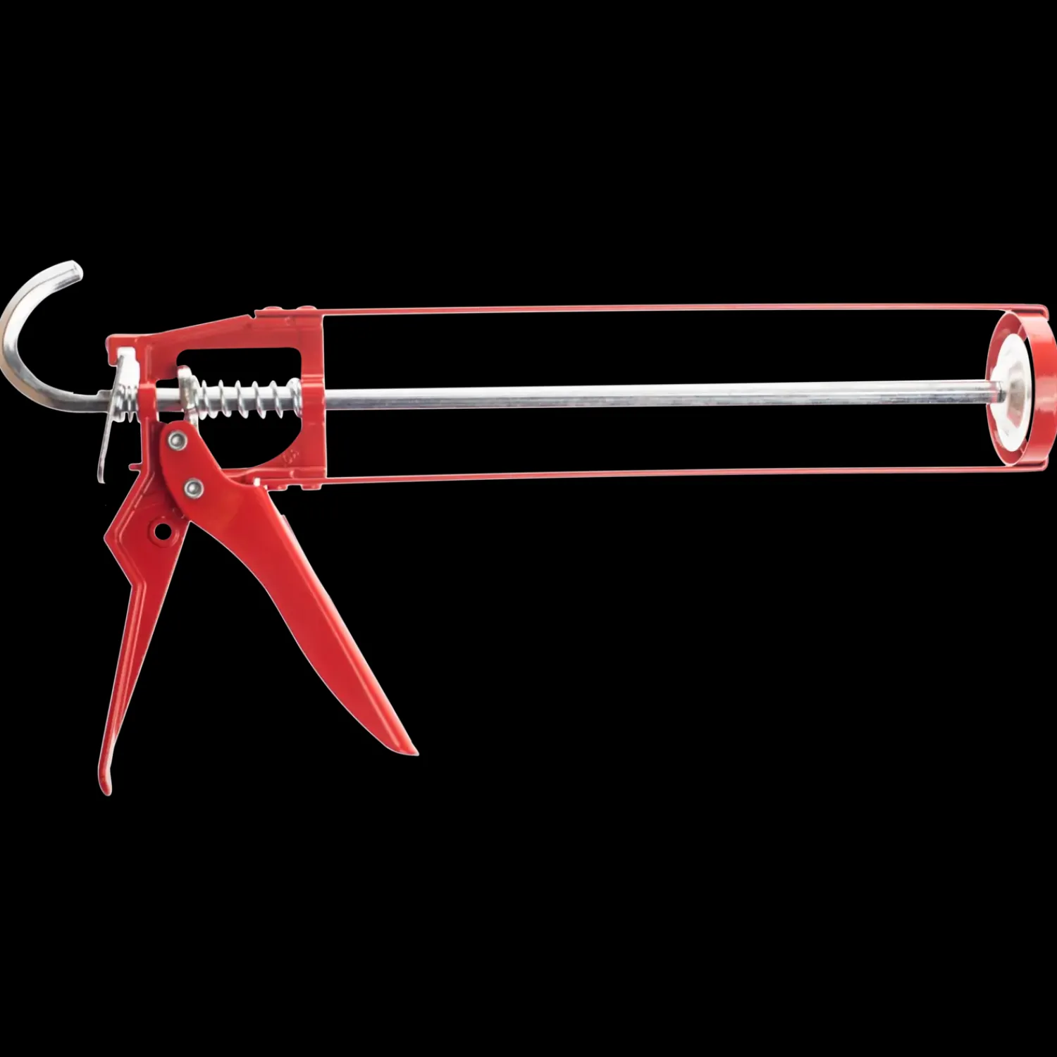 Kraftig skeletpistol i metal med krog., som passer til 300 ml patroner. Denne kraftige skelet-fugepistol D-883 er udført i orange metal og er nem at betjene med det gode håndtag, som ligger godt i hånden.