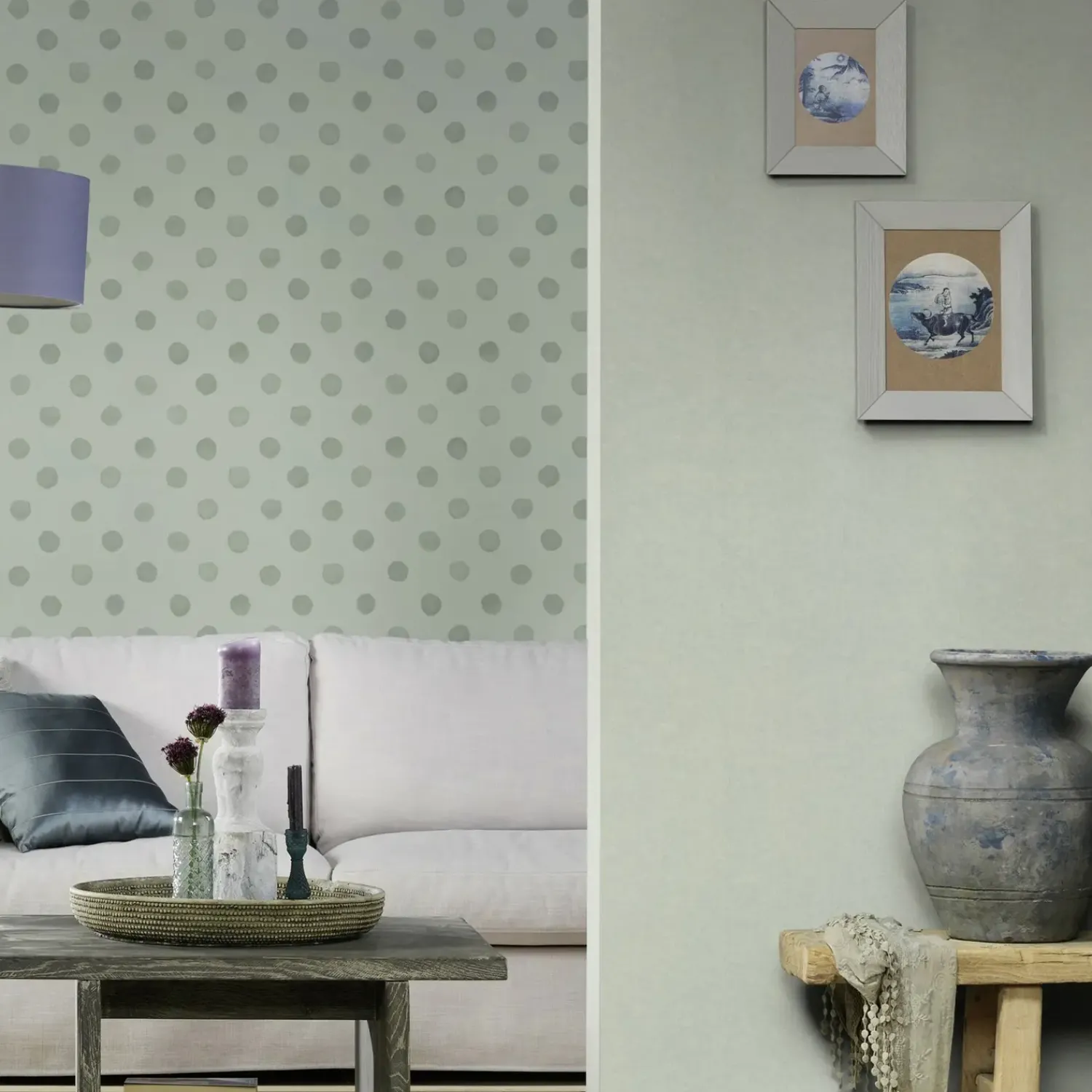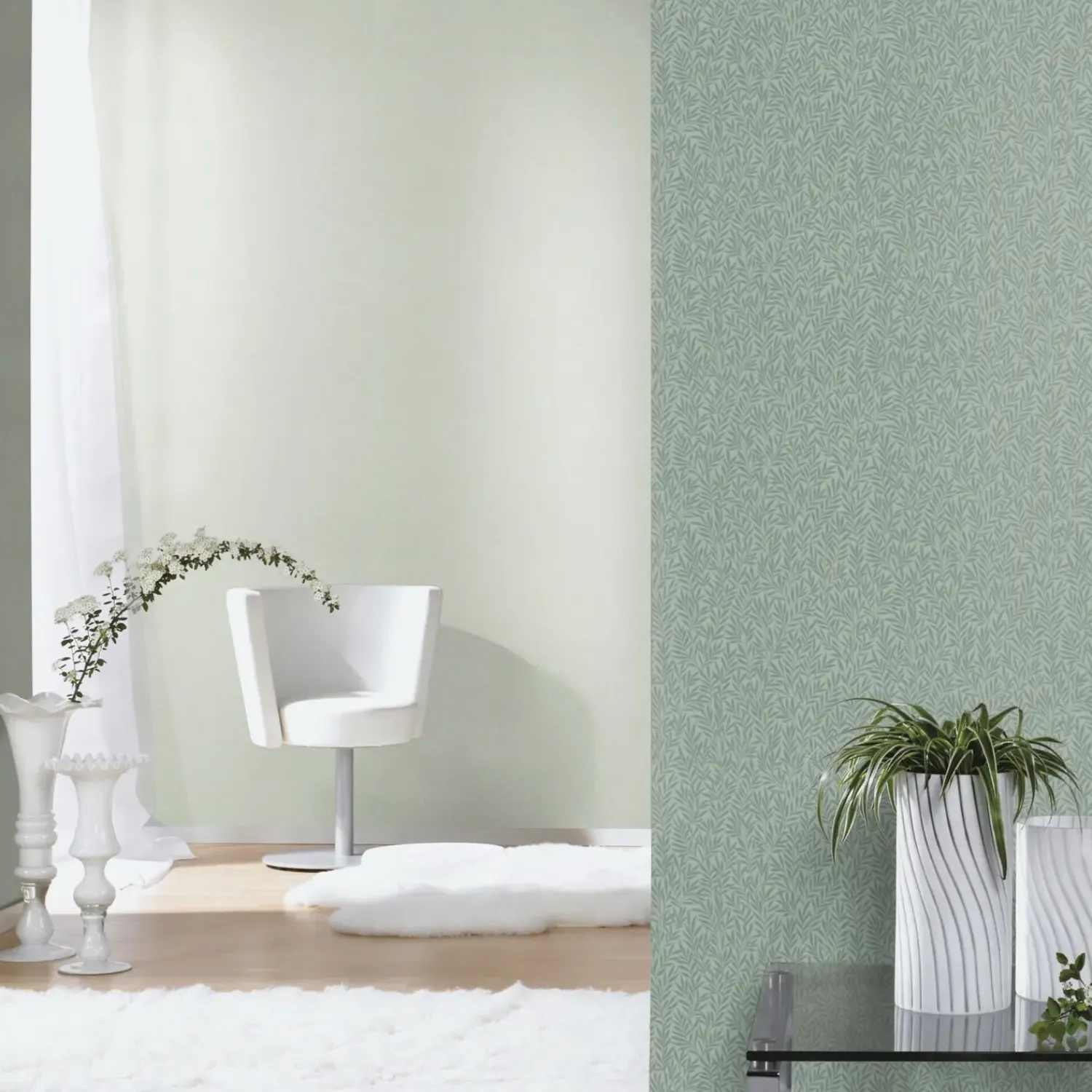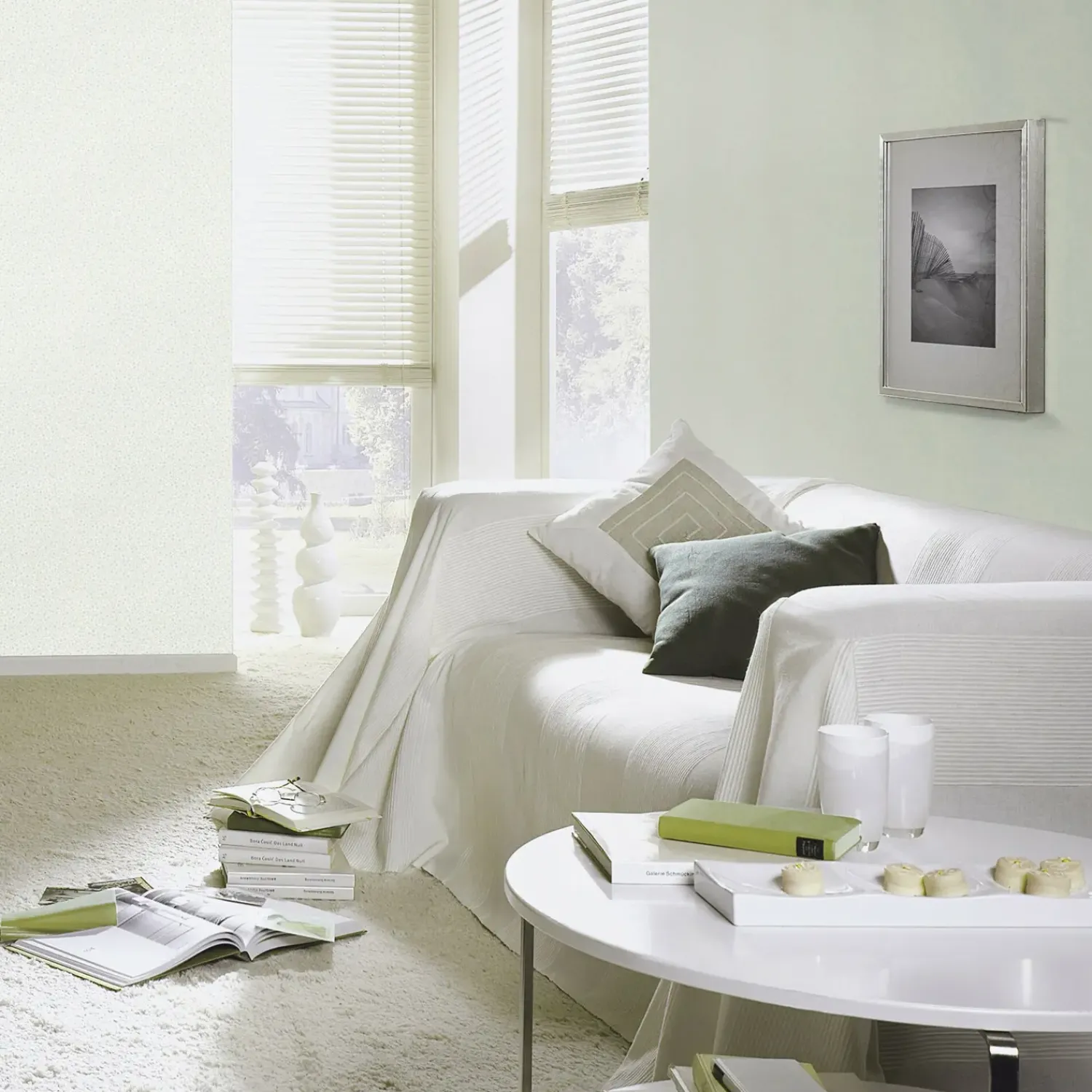 Et ensfarvet tapet med en elegant og diskret tekstilfornemmelse over sig – der vil give en rolig og behagelig fornemmelse i rummet.