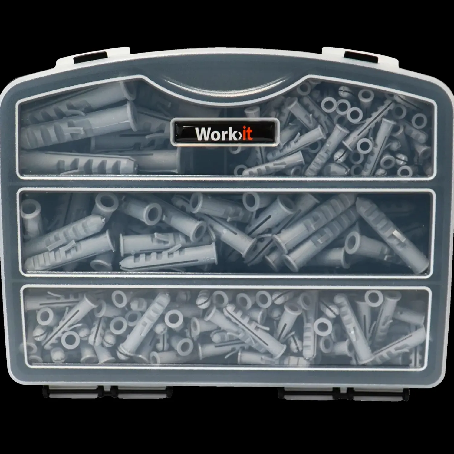 Work>it sortimentsboks med 230 assorterede rawlplugs