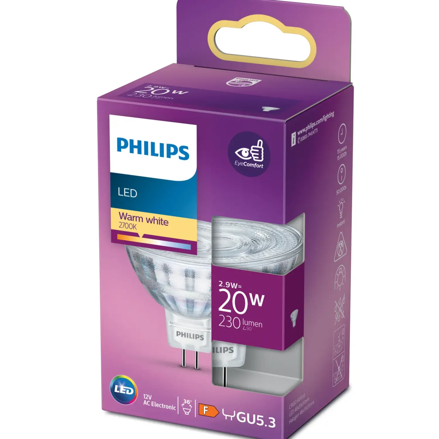 Philips LED spots udsender en fokuseret klar stråle, har en lang levetid og giver store energibesparelser