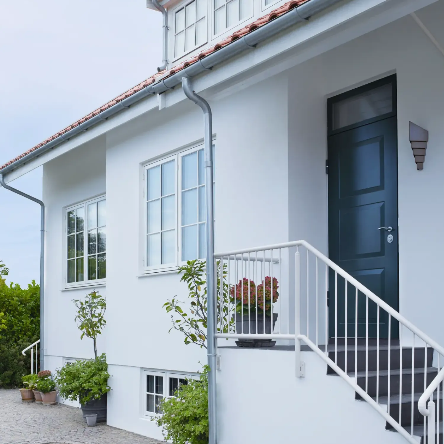 Den malede overflade får et flot mat kalklignende udseende. Dyrup Facade Silomur beskytter og holder murværket tørt ved let at lade fugt indefra slippe ud og med sin vandskyende effekt og samtidig lukke af for regn udefra.