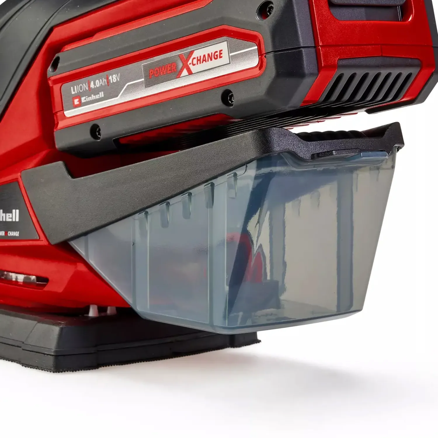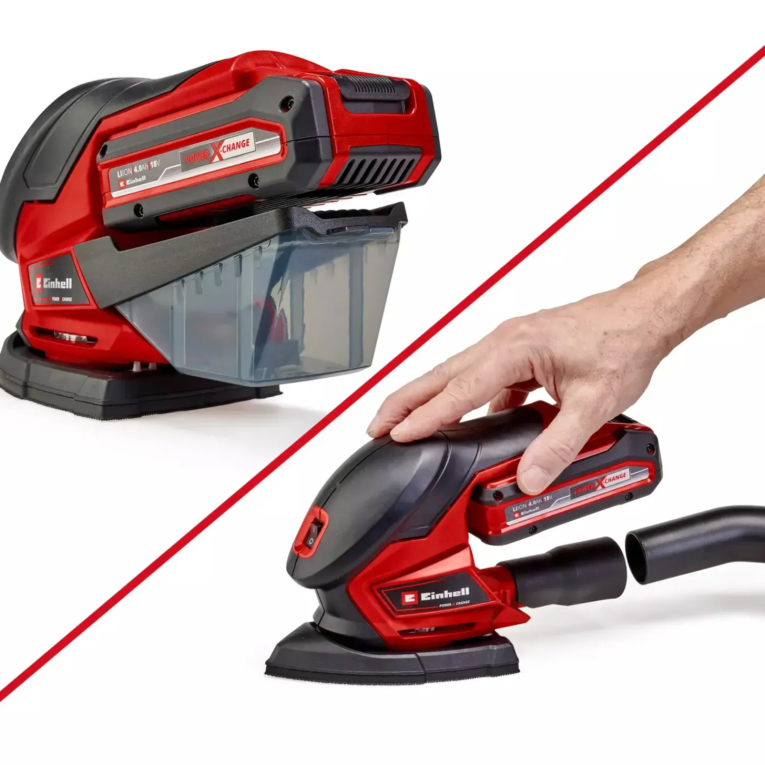 Den ledningsfrie slibemus leveres med “Extreme Fix” velcro, så slibepapiret kan udskiftes på få sekunder og derefter levere en høj grad af materialefjernelse på grund af lav friktion. Til rent og praktisk talt støvfrit arbejde, er der en støvopsamlingsboks med aktiv støvudsugning.