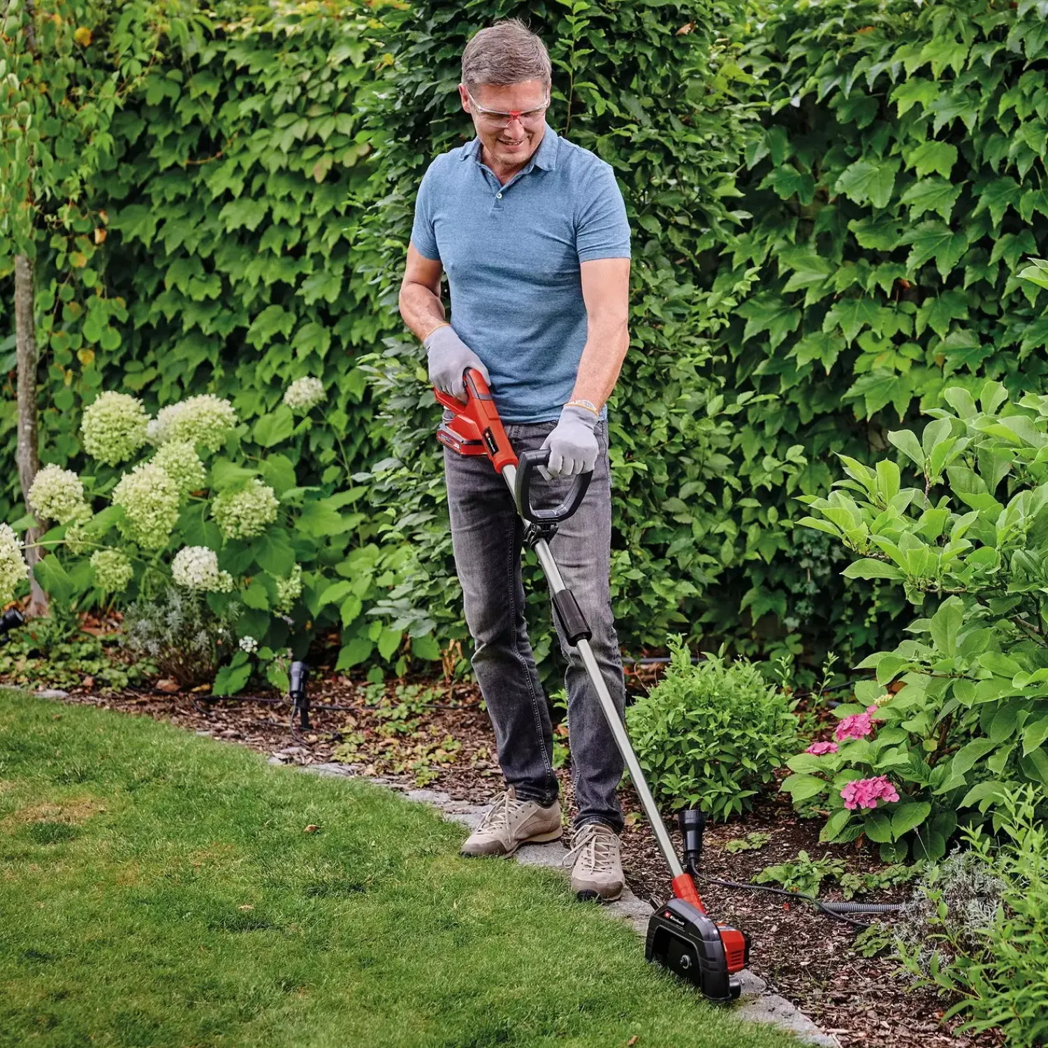 For præcise resultater mellem 36,5 mm og 45 mm er der en justerbar dybde indstilling facilitet med 3 niveauer. Den tobladede fræser giver perfekte resultater ved klipning af kanter, og præcis fremskridt langs plænen sikres af rullerne foran /bagpå. Det bløde greb garanterer optimal håndtering og ergonomi. Det justerbare ekstra håndtag sikrer, at den trådløse plænekanttrimmer kan styres præcist og sikkert. Splitakslen gør det nemt at transportere og stuve væk i minimal plads.