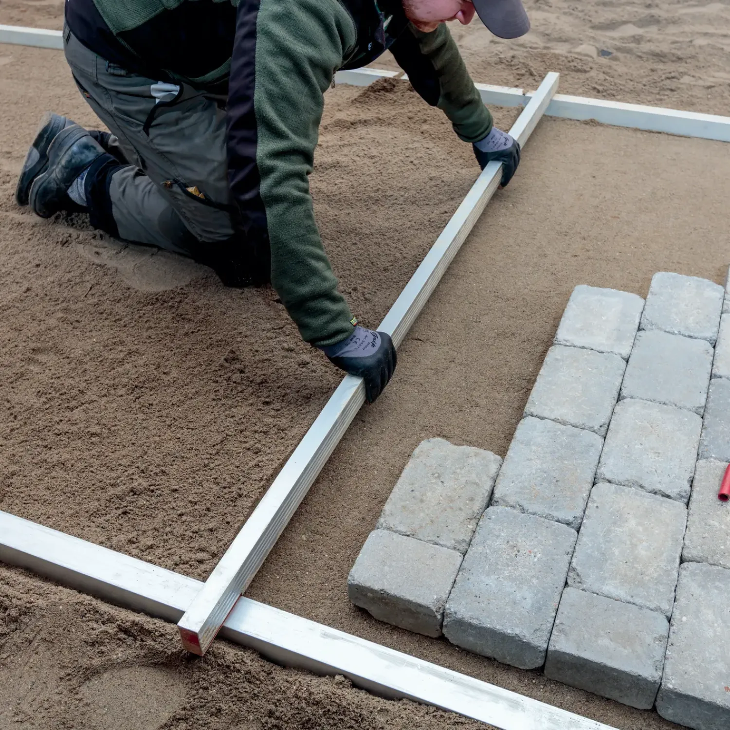 Opnå en plan, flot og ensrettet belægning med dette afrettersæt fra Eskimo til brolæggerarbejdet. Afrettersættet er særlig velegnet til proffesionelt brug. Dette Eskimo afrettersæt indeholder 4 stk. sideskinner med en længde på 2 meter og 1 stk. trækskinne med længde på 2 meter samt 2 samlestykker til siddeskinnen.