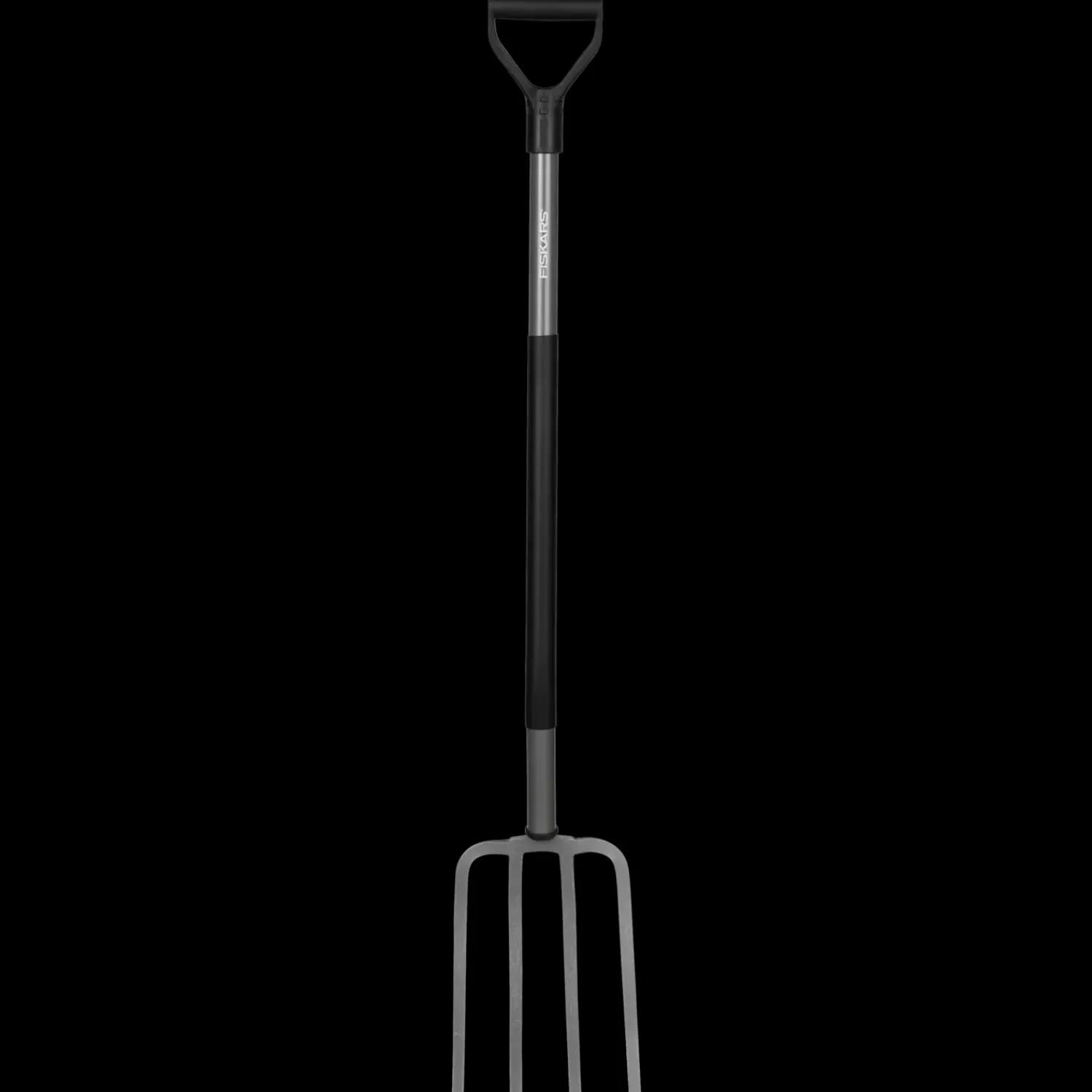 Denne Fiskars gravegreb er specielt udformet til at mindske belastningen af kroppen under havearbejdet. Vinkel på de S-formede, ergonomiske skafter aflaster ryg og skuldre. Håndtaget er i blød plast, hvilket gør greben skridsikker og behagelig at arbejde med.