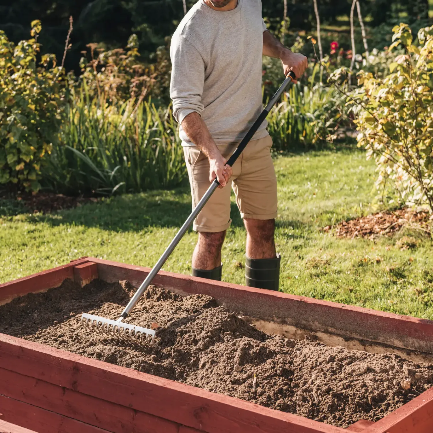 12 tands riven fra Fiskars ergonomi serie er specielt udformet til at mindske belastningen af din krop under havearbejdet så du kan nyde frugten af arbejdet når du slapper af på terrassen efter en dag i haven. Vinkelen på det S-formede ergonomiske skaft aflaster ryg og skuldre og det bløde skridsikre plasthåndtag er behageligt at have i hænderne.12 tands riven er særdeles velegnet til jævning af jorden efter kultivering og lugning af jorden.