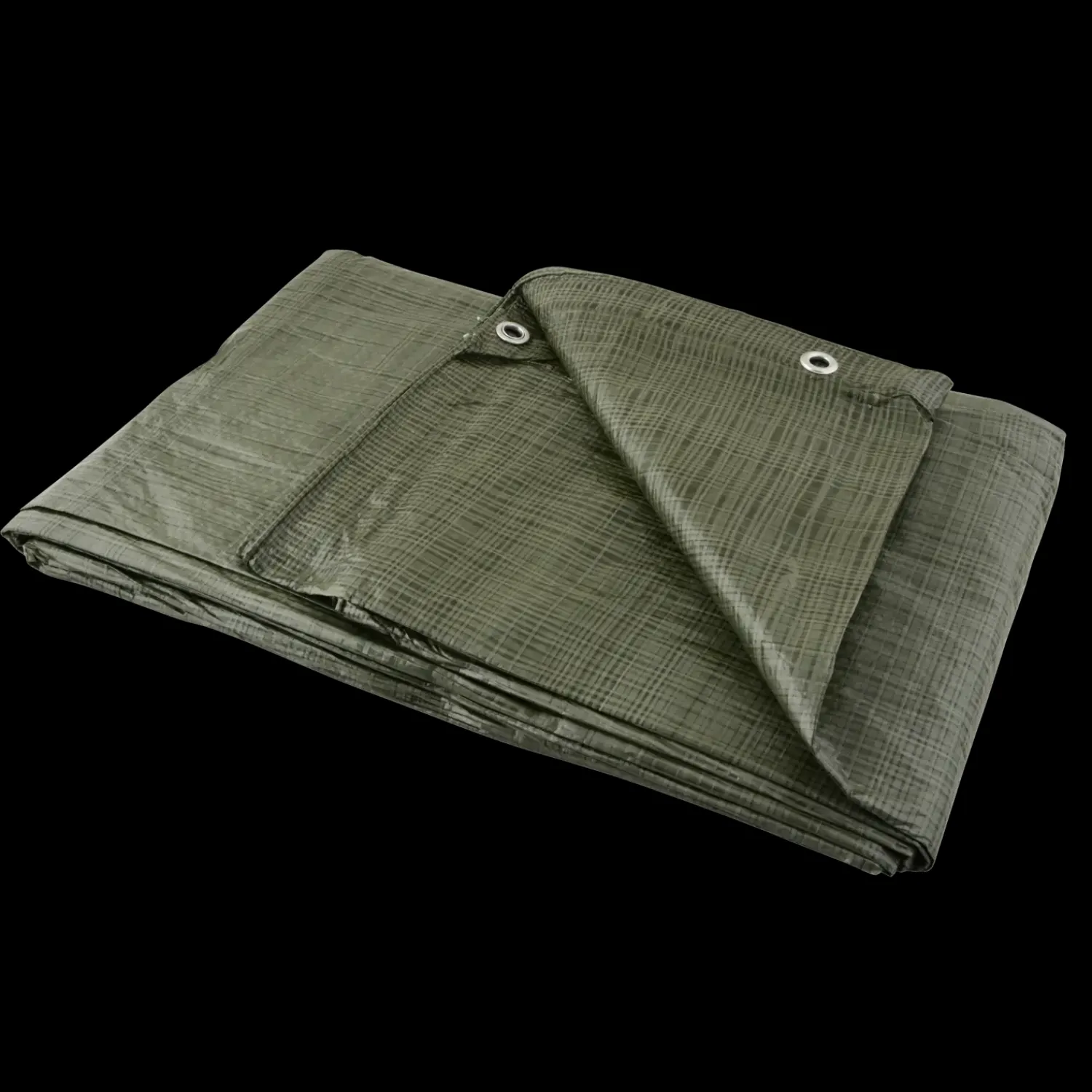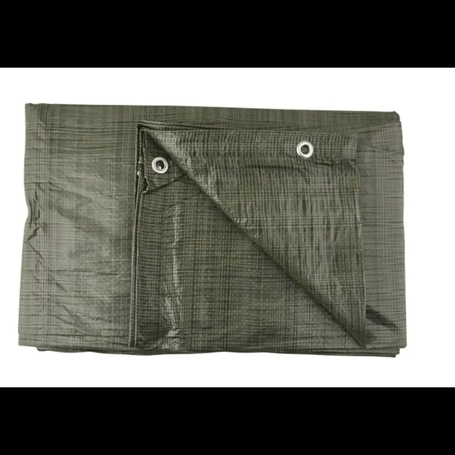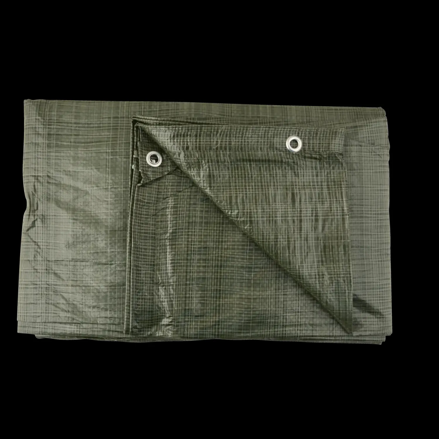 Presenning 55 g / m² i færdigsyet mål. Den er lamineret på begge sider og kanten er ombukket og isyet line og der er indsat ringe for hver meter. Presenningen har en 3 % Min/Max tolerance på vægt + mål. Den er grøn og fremstillet i polyethylen. Endelig vægt og mål varierer efter den ønskede variant.