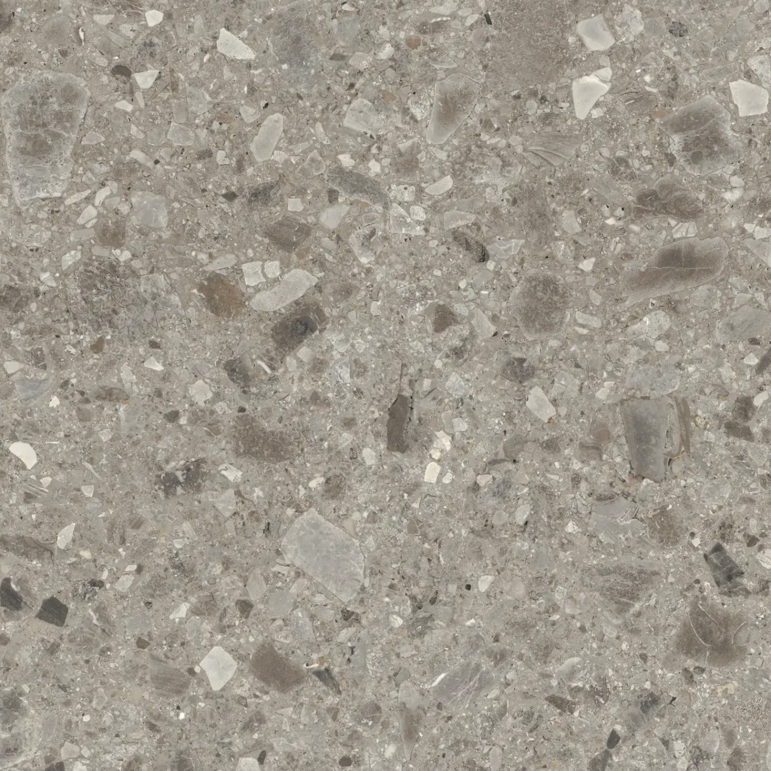 Ceppo di Gré er en grå stenart som indeholder en masse mindre sten. Ceppo di Gré skaber, med sine mange små sten og grå nuancer, et abstrakt mønster på gulvet.