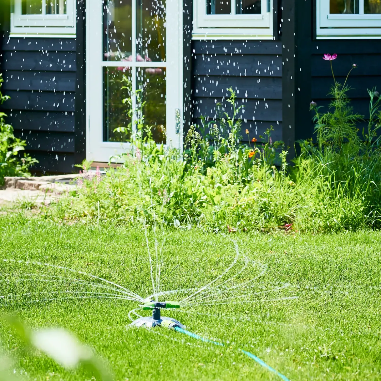 Grouw rotorvander med 3 sprinkler. Vanderen er med stabil fod der sikre at basen ikke vælter. Grouw rotorvander roterer automatisk 360 grader og det smarte design, sikre optimal vanding af græsplæne.