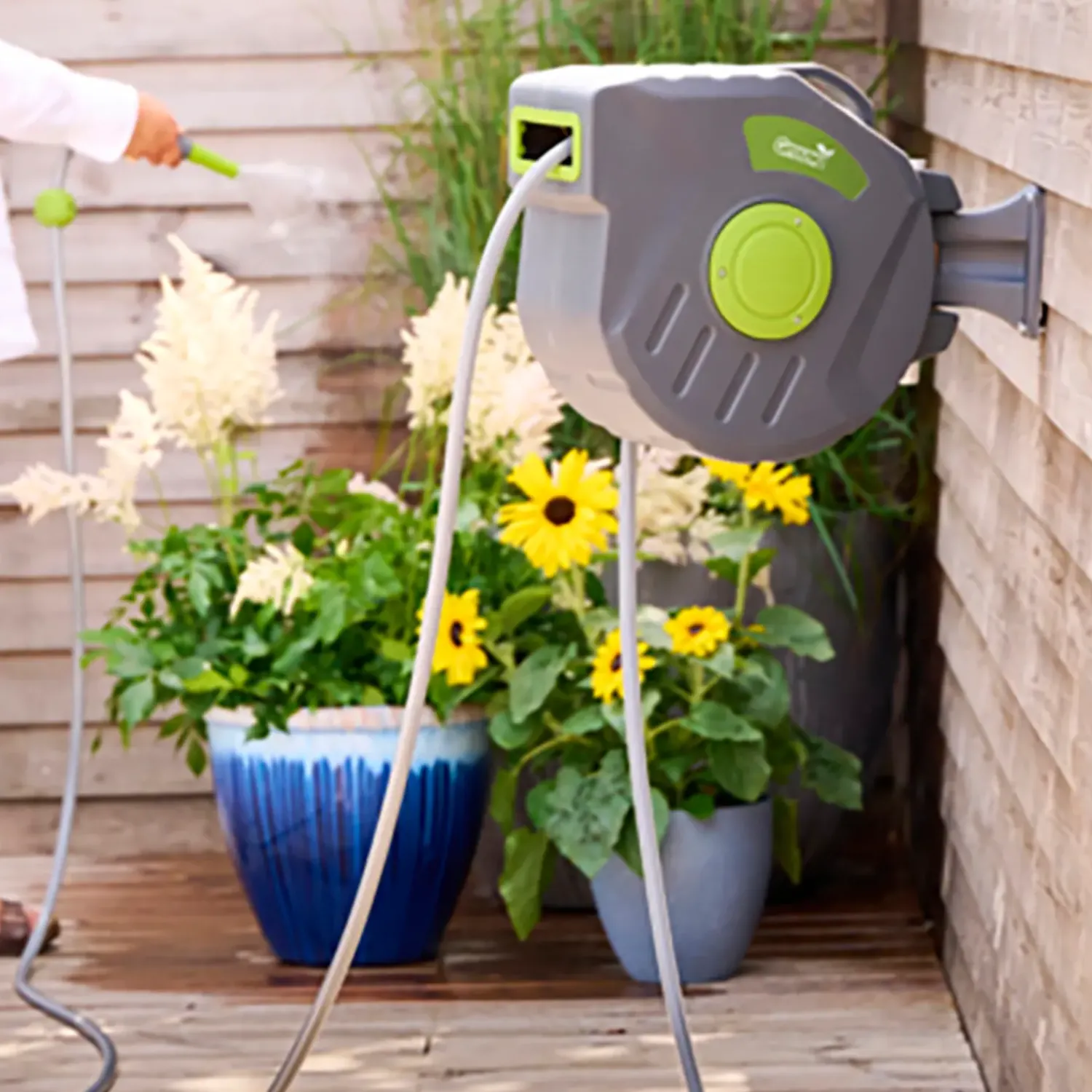 Hold styr på haveslangen med denne praktiske slangeopruller til vægmontering.
