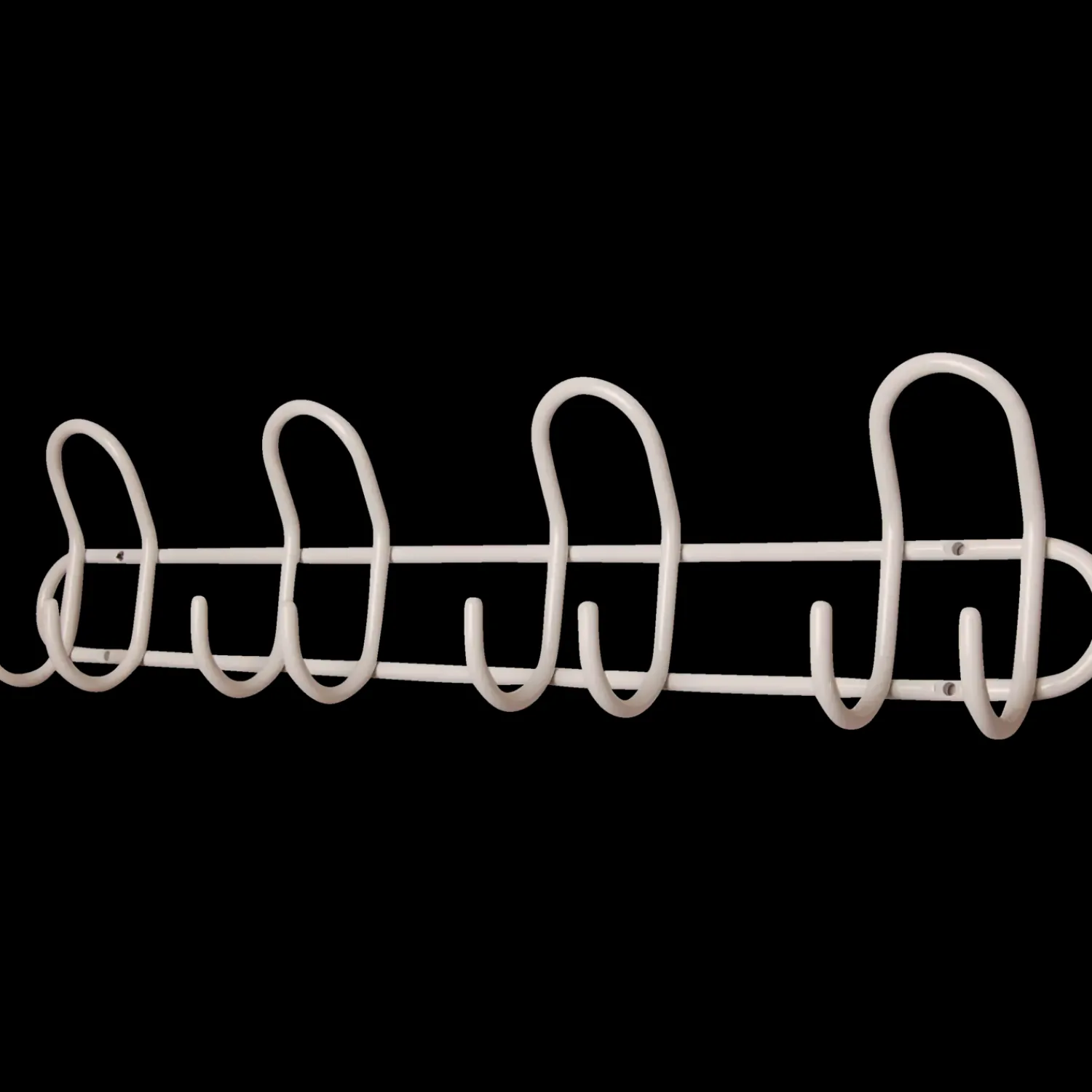 Knagerække med 4 knage, med 2 på hver, samt hatteknag øverst. Knagerækken er fremstillet i pulverlakeret stål og kommer med skruer og plugs til montering.