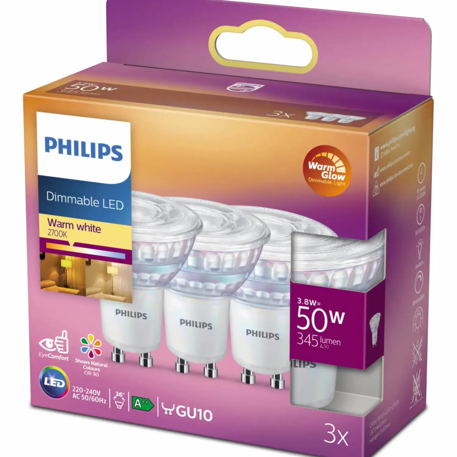 Hot Philips Spot LED pære GU10 50W 3 pack