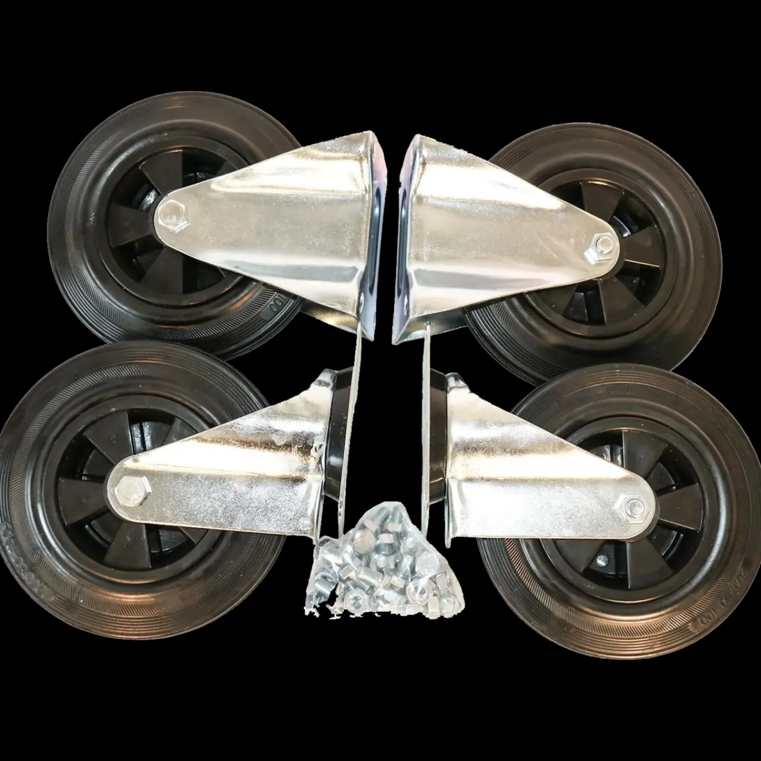 Sæt bestående af 4 massive hjul og 4 gafler (2 faste gafler samt 2 drejelige gafler)Hulbillede: 105 x 80 mm