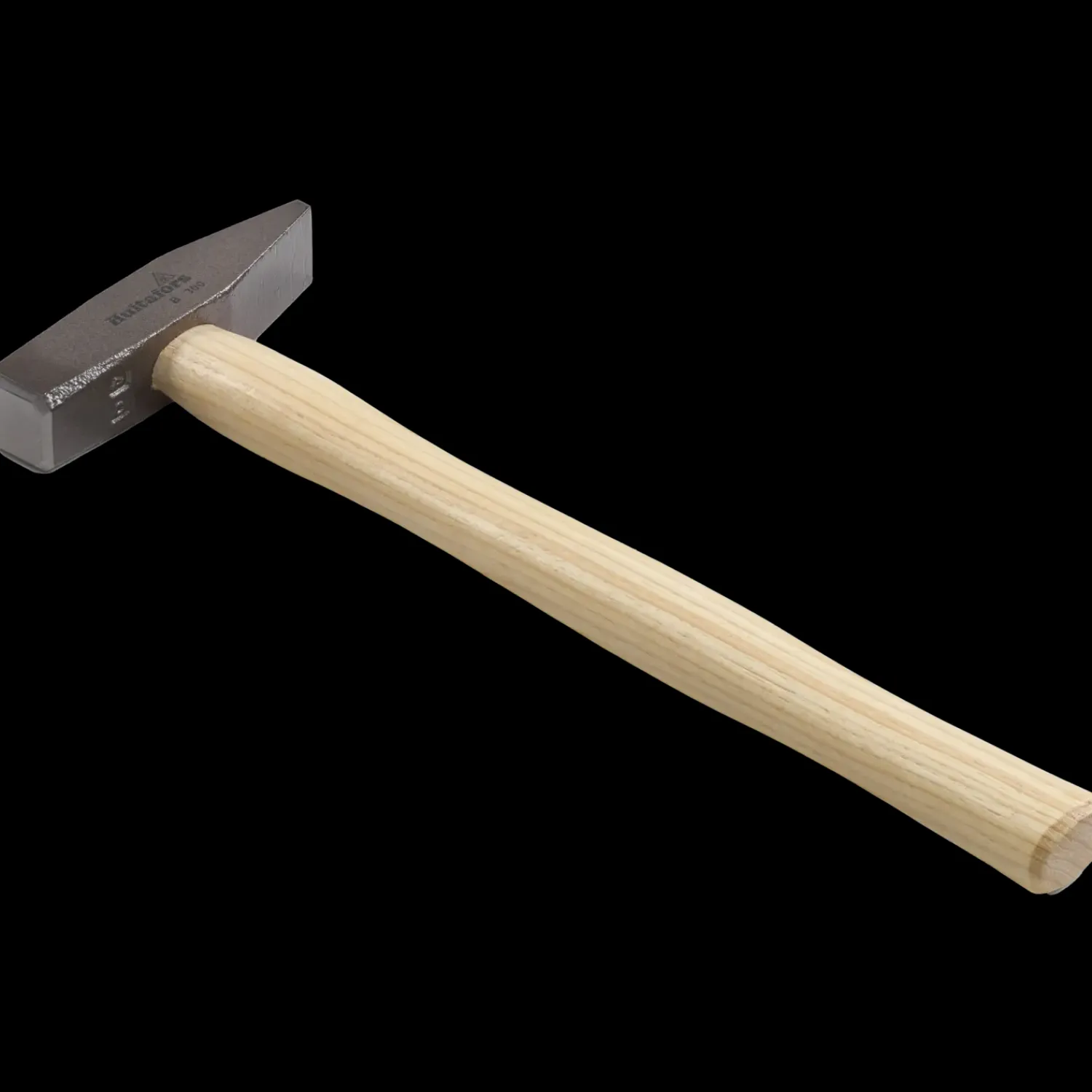 Bænkhammer med sandblæst og klarlakeret hoved, hærdet pen og slagflade. Træskaft i hickory.