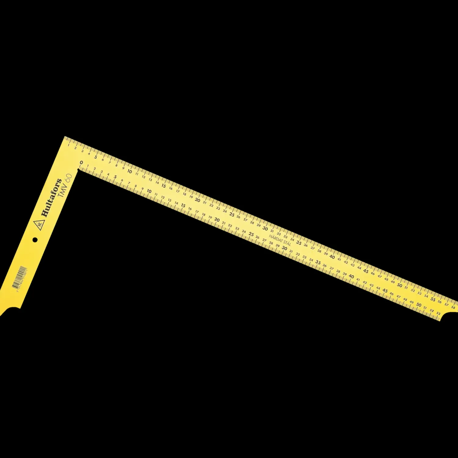 Tømrervinkel med anslag i epoxylakeret stål med millimetergradering i over- og underkant på klingen.