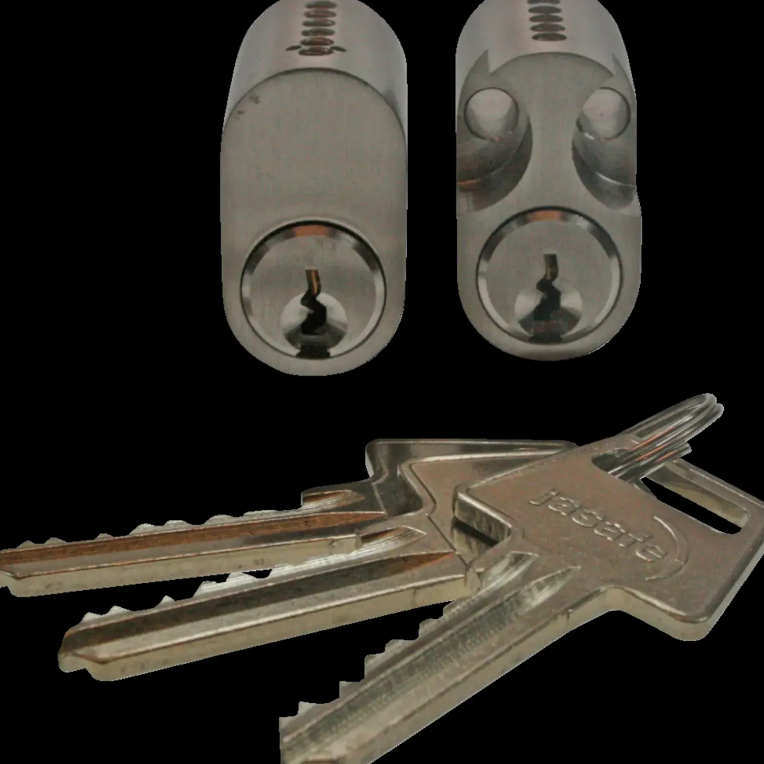 Enslukkende cylindre, én oval og én rokoko inkl. 3 nøgler.Godkendelse: DS/EN 1303Matnikkel overfladeVarenr.:5110 530…