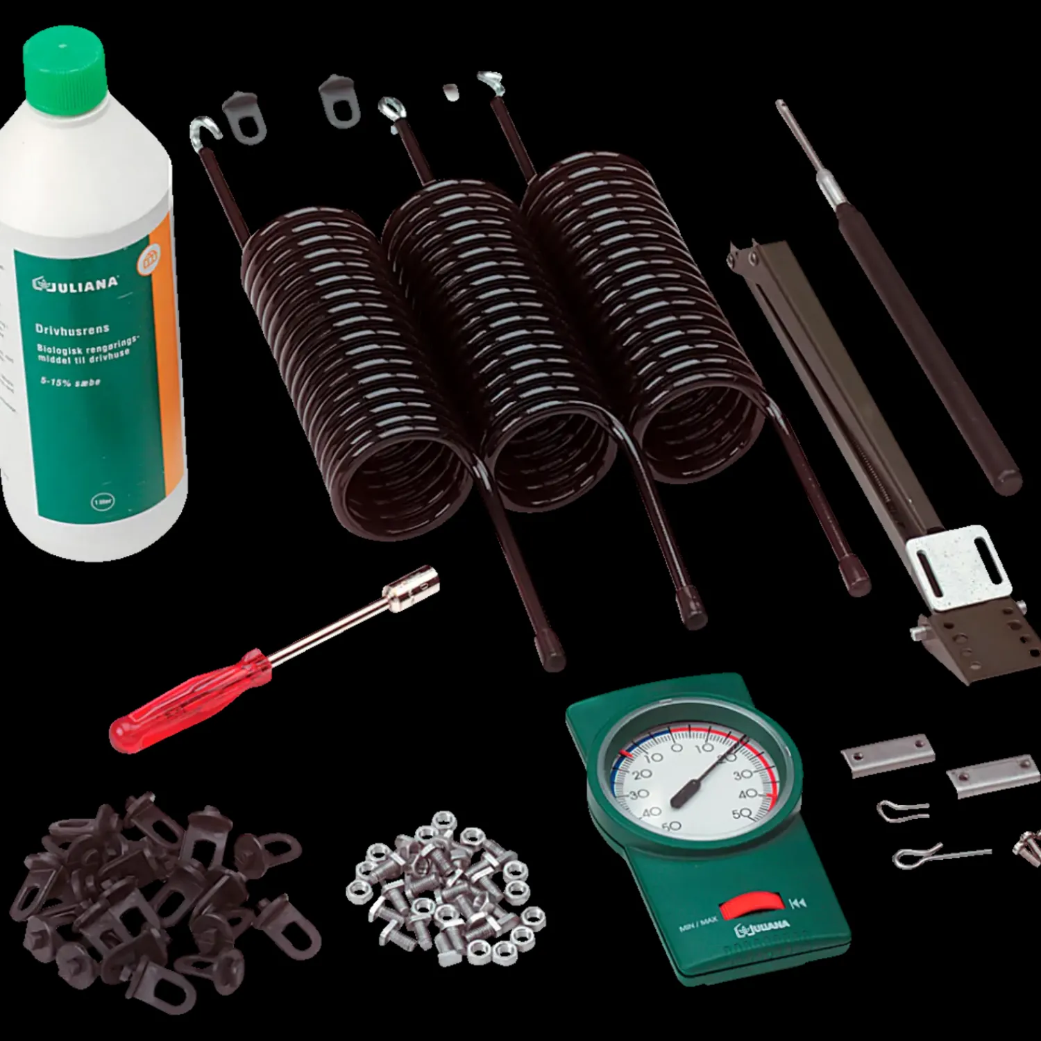 Denne vinduesåbner er den mest optimale for drivhuse med polycarbonat. Vinduer med polycarbonat er ikke så tunge som vinduer med glas. Det betyder, at når det blæser kan vinduesåbnere med cylindere have svært ved at lukke vinduer med polycarbonat, hvorimod Univent med dobbelt fjeder selv trækker vinduet til.