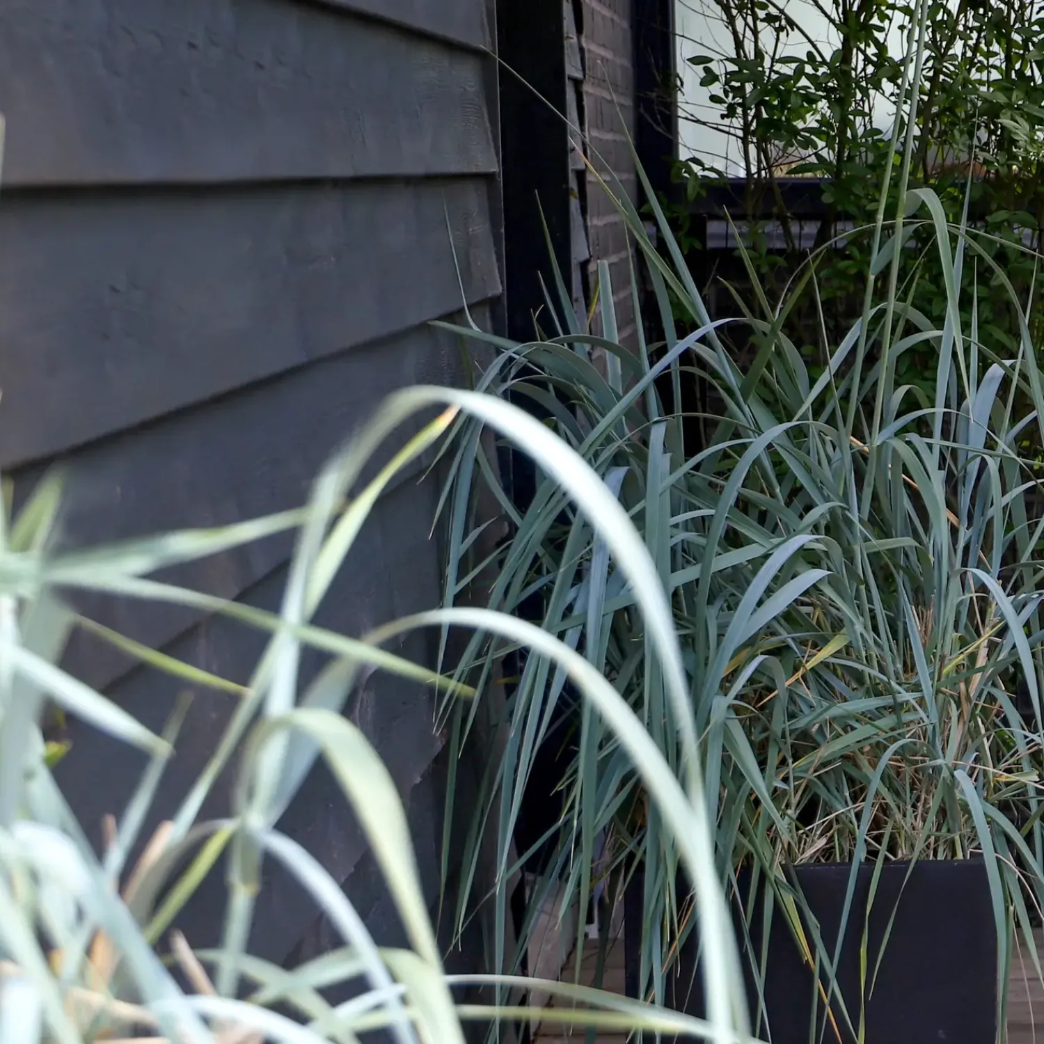 Sort grundmalet klinkbeklædning med fer og not til f.eks facadebeklædning..
