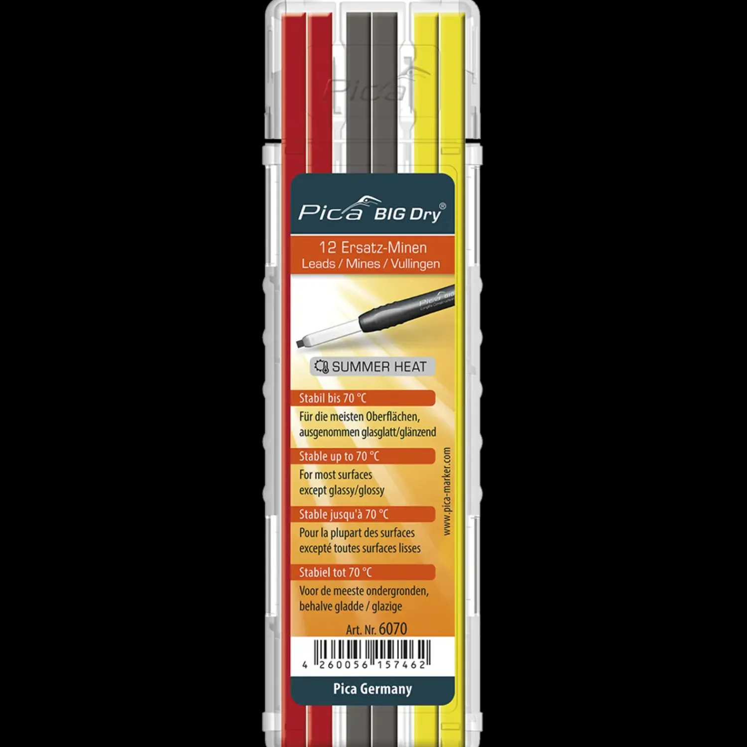 PICA BIG refill stifterne er alle produceret efter højeste kvalitetskrav. Med de mange muligheder i farver og hårheder, gør de PICA BIG til et foretrukket prof markerings værktøj