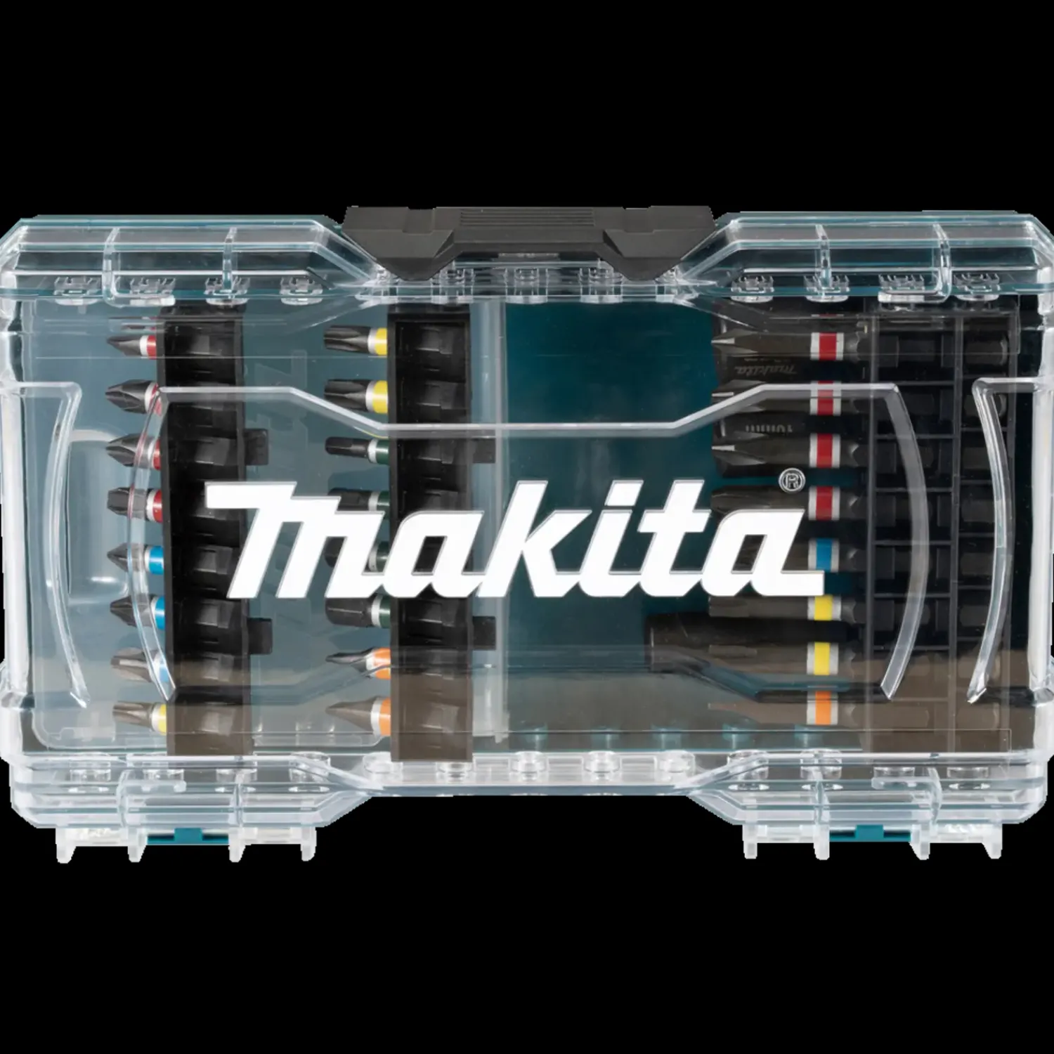 Praktisk tilbehørskasse med gennemsigtigt låg der inkluderer 28 dele. Omfatter 8 stk. 50 mm bits: PZ, PH, SL, TX, 16 stk. 25 mm bits PZ, PH, SL, TX, HEX, Magnetisk bitholder, 3 stk. magnetisk toppe 8,10,12mm,