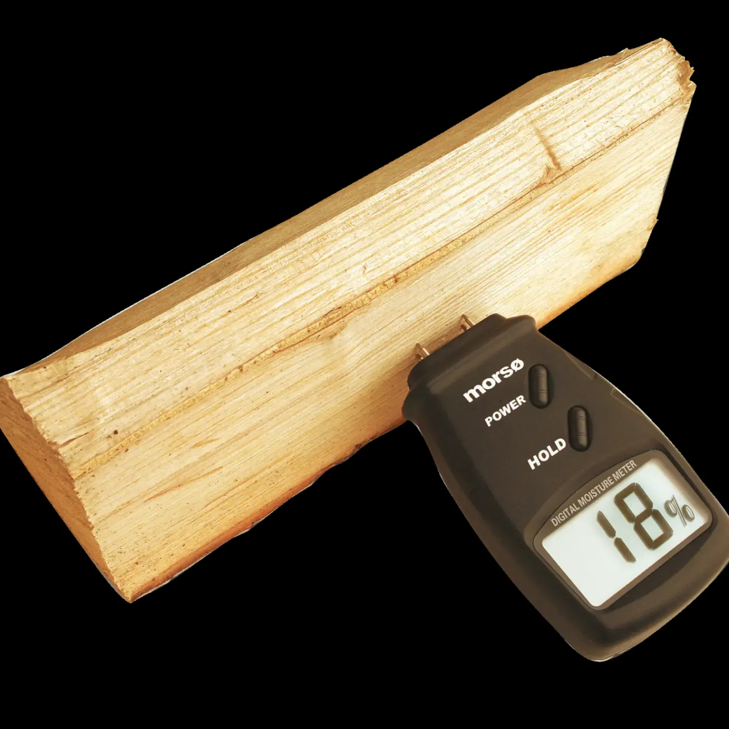Flæk træet, mål vandindholdet ved at stikke fugtighedsmålerens ben ned i træets friske flade – dobbelttjek på flere brændestykker, så du er helt sikker på resultatet.