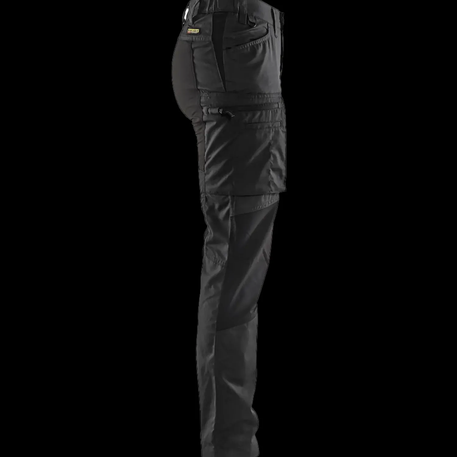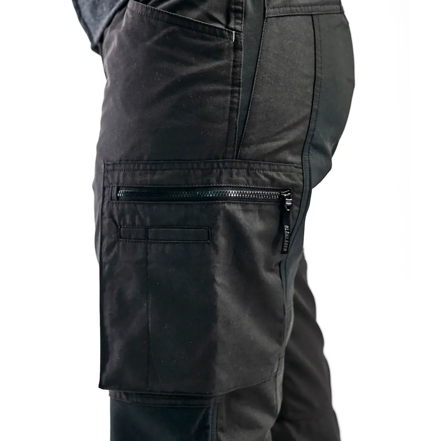 Moderne service buks i et let, men slidstærkt materiale, som er hurtigtørrende – hvilket gør buksen perfekt til indendørsarbejde, eller ude i varmt vejr. Modellen har smal pasform og elastik i livet, samt forbøjede ben for større komfort. For stor bevægelsesfrihed har buksen stretch i skridtet, på bagen og ved knæ. Buksen har pen- og knivlomme tilpasset højre- og venstrehåndet. Lårlomme med indvendig telefonlomme i mesh, samt mulighed for at forlænge ben til C100-str.