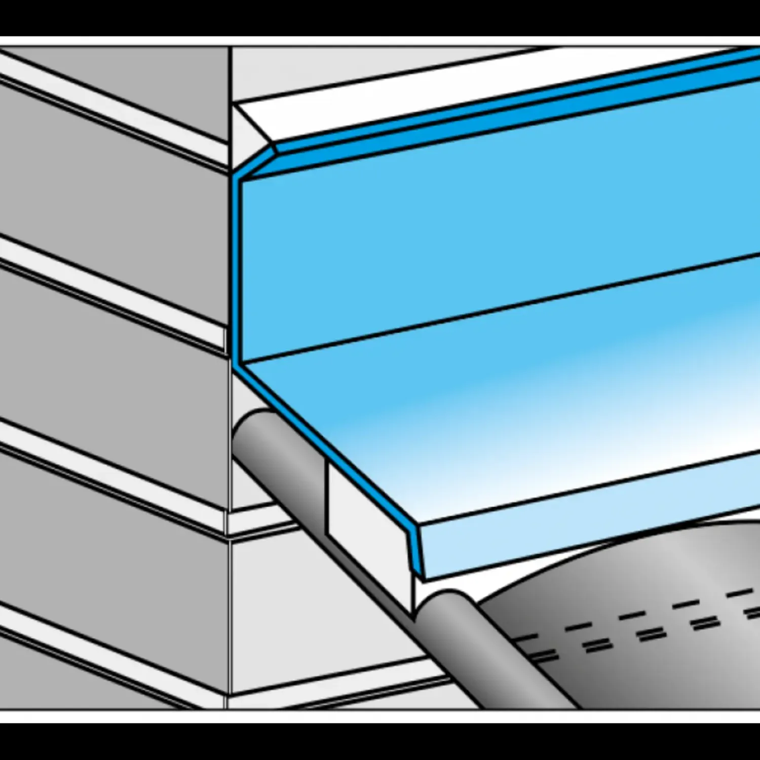 Mellem inddækningsprofilen og muren skal der fuges med en elastisk fugemasse. Fugemassen skal glittes med en fugepind og have en hældning på min. 30°