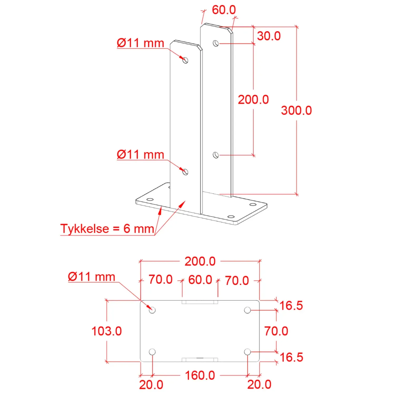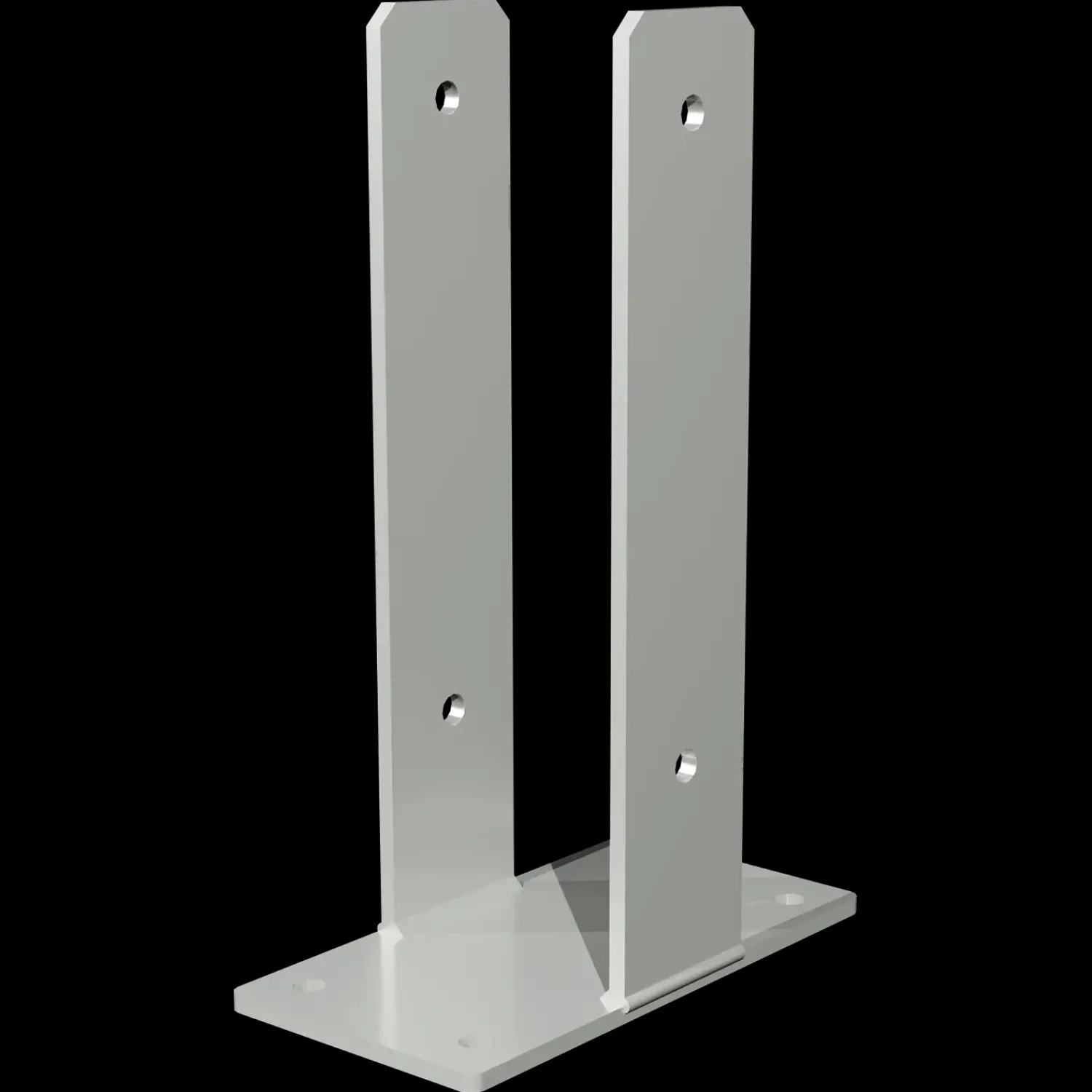 Stolpefod i varmgalvaniseret stål fra Plus til nedstøbning i fundament. Stolpelængden skal beregnes efter hegnets højde + 7 cm afhængig af afstanden fra underkant af hegnet til terræn.