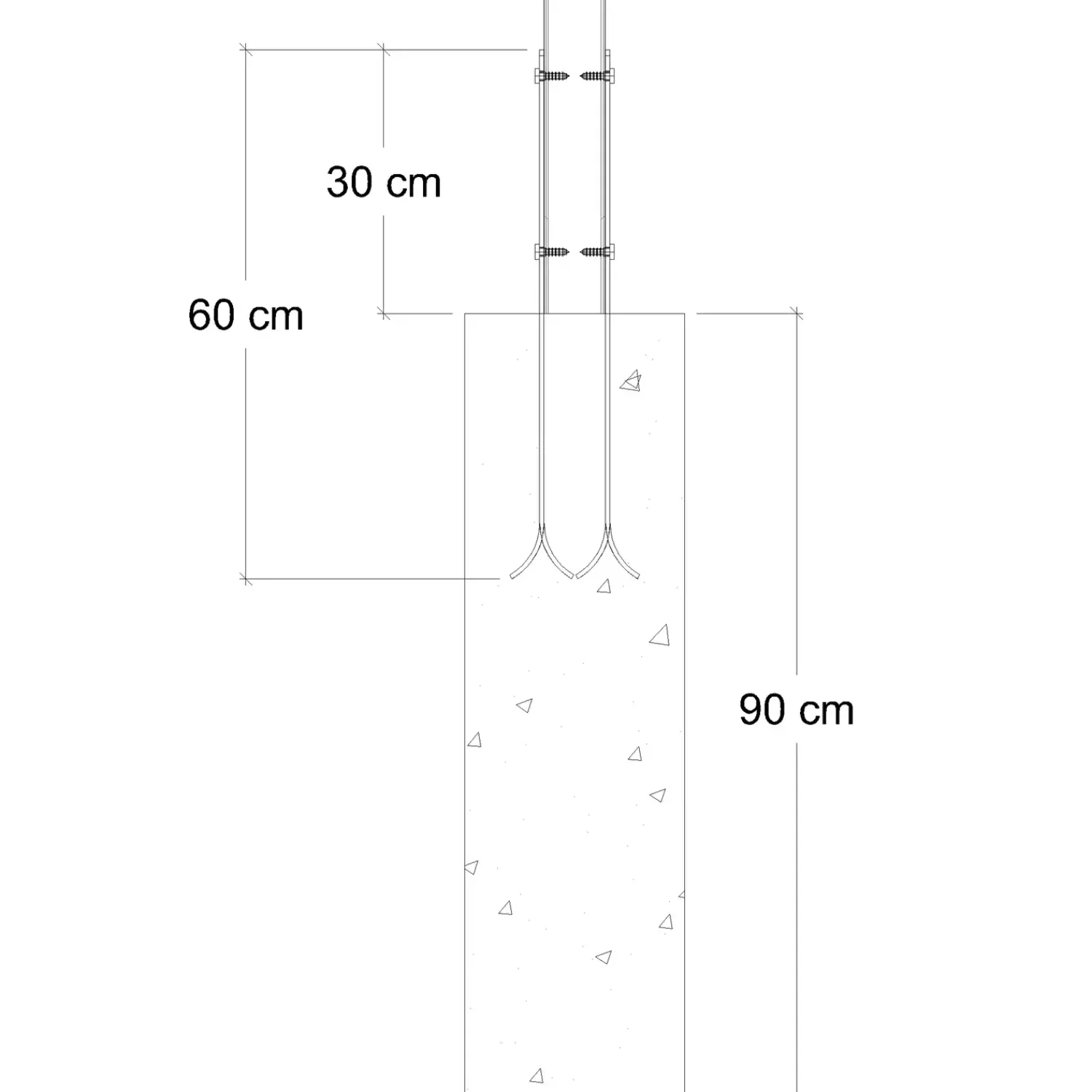 Stolpefødder i varmgalvaniseret og pulverlakeret stål, er et alternativ til at grave stolpen ned. Hvis du ønsker, at holde stolpen helt fri for jordkontakt, kan du vælge at gøre stolperne fast på en stolpefod, som nedstøbes i beton. Stolpelængden beregnes som hegnets højde + ca. 7 cm, alt efter afstanden fra underkant af hegnet til terræn. Stolpefoden skal forankres i beton til frostfri dybde på ca. 90 cm.