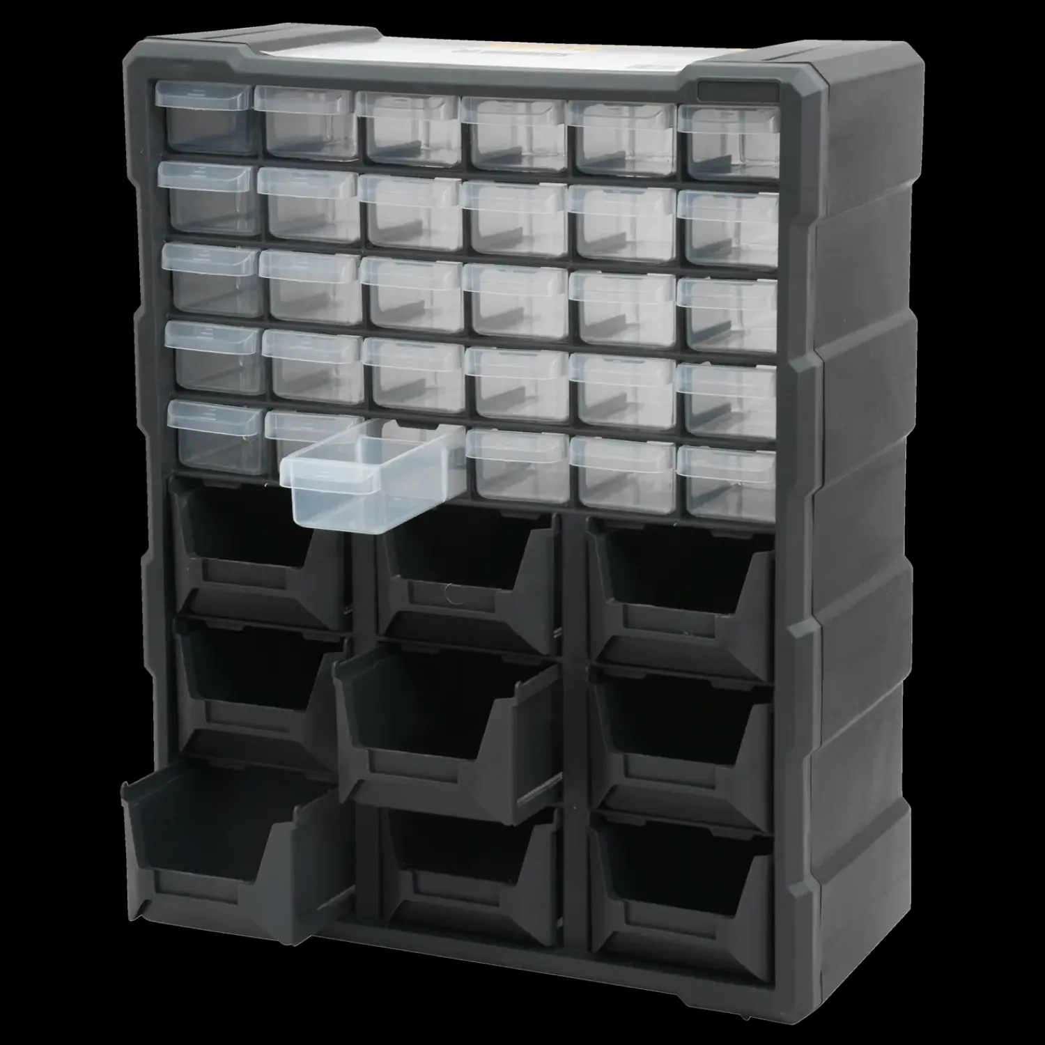 Praktisk og solid skufferol med 39 skuffer – 9 af skufferne er åbne for nemmere og hurtigere adgang.