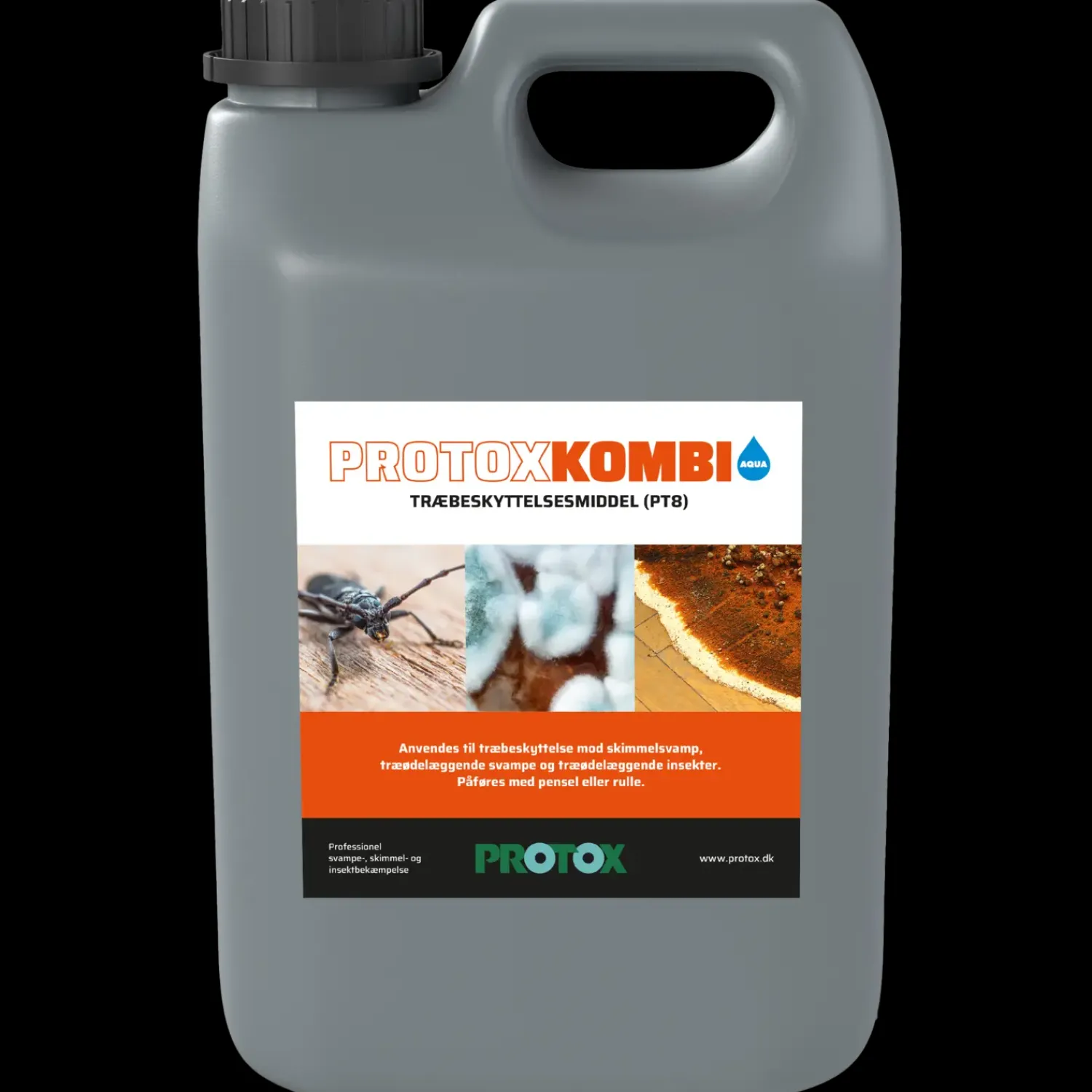 Et professionelt og effektivt vandigt middel til forebyggelse af angreb fra trænedbrydende svampe, insekter og skimmelsvamp. Protox Kombi Aqua må kun anvendes UDENFOR dampspærren på. f.eks. vinduer, udvendige døre, beklædning, hegn, carporte og skure.
