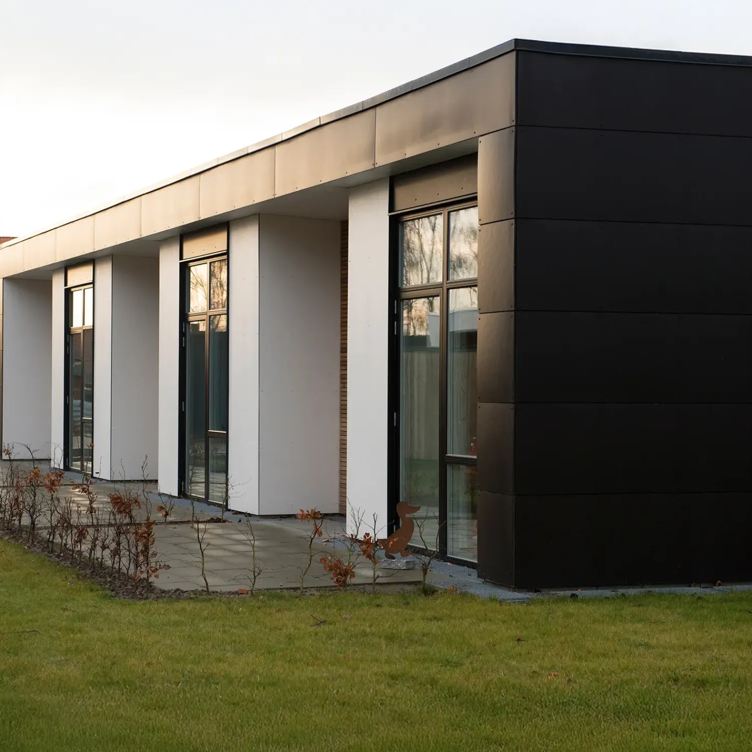 Swisspearl Zenor er en gennemfarvet fibercementplade med en fulddækkende overfladebehandling. Facadepladen Swisspearl Zenor har således en matchende farve på overfladen og på kanterne, og alle udskæringer og borede huller får samme nuance som pladens kanter. Pladens farvebestandige karakter giver byggeriet en markant og ensartet overflade.