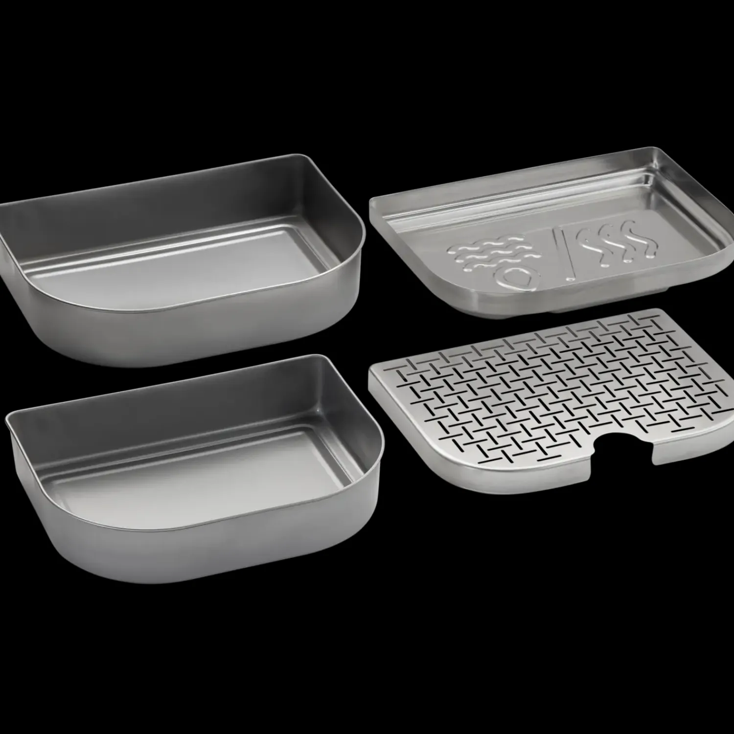 Få endnu flere muligheder med din Lumin* Compact-elgrill med multi-kittet i 4 dele. Multi-kittets beholder, der har to funktioner, udvider grillens damp- og smokerfunktion til at dække hele grillfladen. Det opgraderer din Lumin-grills evne til at skabe røginfusion, så den fungerer a la en elektrisk smoker. Med dine foretrukne Weber-røgflis kan du tilberede lækre, langtidsgrillede favoritter såsom spareribs, nakkefilet (pulled pork) og spidsbryst (brisket). Kittet giver dig også mulighed for at dampe friske grøntsager og hele fisk eller hummer. Og når det er tid til at spise, kan gæsterne nyde måltidet takket være kittets to fade, som du lægger maden i, så grillen kan holde den varm i timevis ved den helt rigtige temperatur – uden at brænde på eller blive tør. Indeholder: Damp-/smokebeholder, vendbar dampbakke og fade (2). *LUMIN er et varemærke tilhørende Weber-Stephen Products LLC og afventer registreringer eller ansøgninger i USA og andre lande.