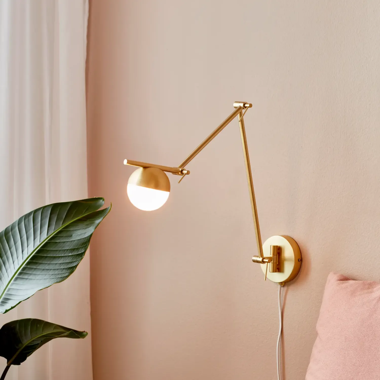 Contina er en eksklusiv væglampe i det smukkeste messing, som tilfører varme og hygge til den lyse nordiske indretning. Contina gør op med den traditionelle forestilling om lampers anvendelse, da den lange fleksible arm gør den anvendelig både som væg- og loftslampe, så her får du en lampe, du selv kan sætte dit eget præg på.