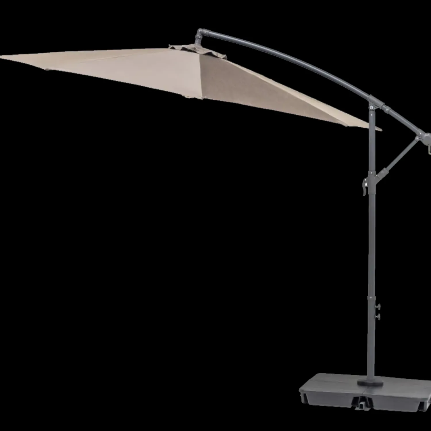 Barcelona parasol med Ø48 stok mm antracit pulverlakeret og med kraftig polyesterdug.Incl. fod 90×90 cm der kan fyldes med sand eller vand..