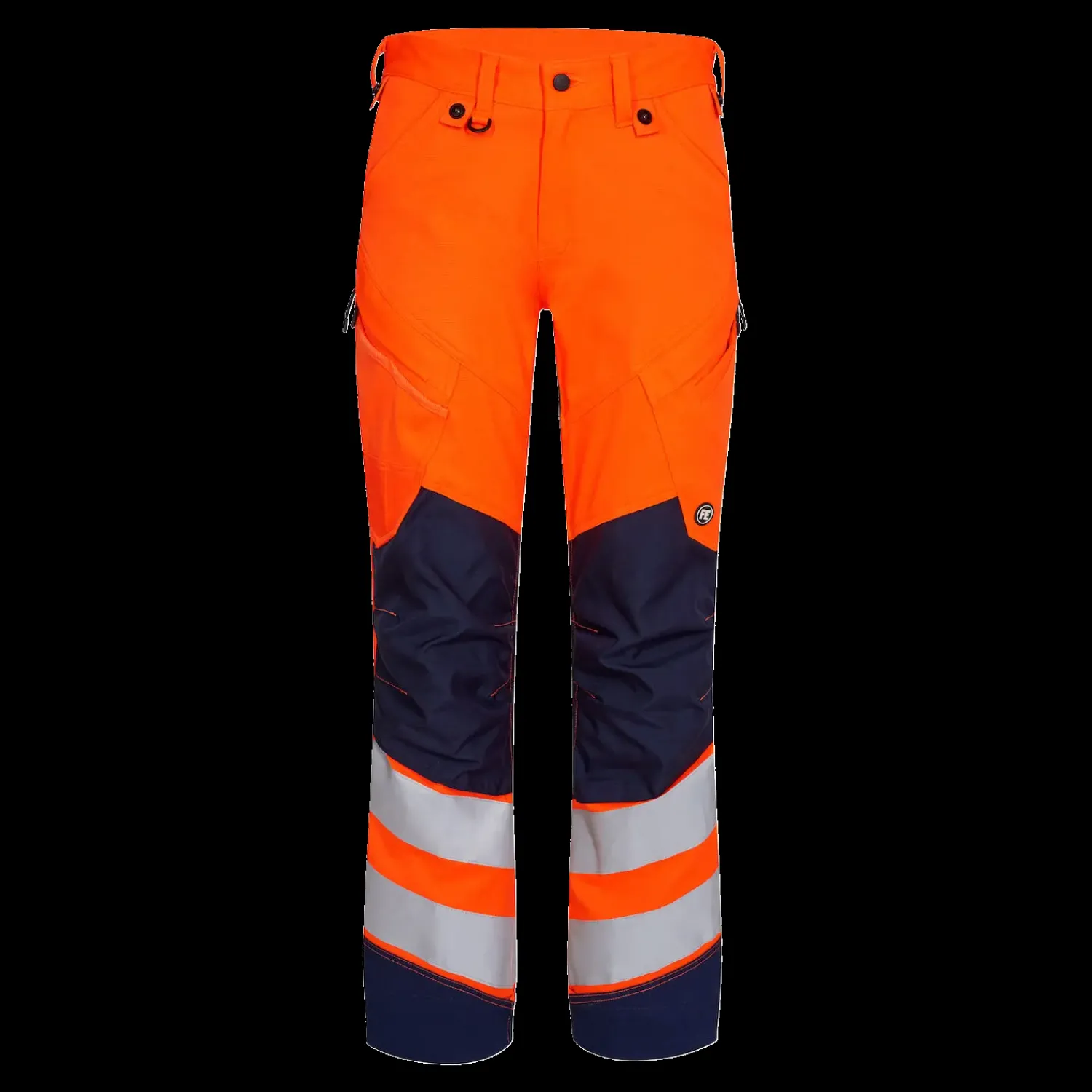 Strækbare og funktionelle fluorescerende bukser med moderne snit. Optimal pasform med bl.a. ergonomisk formet knæparti. Den strækbare metervare gør at bevægelighed og komfort er i top. Knapper for let og hurtig montering af hængelommer. D-ring foran til påsætning af f.eks. ID-kort. To rummelige skrålommer foran. To baglommer. To lårlommer som lukkes med lynlås. I venstre side har lårlommen en ekstra telefonlomme. I højre side har lårlommen påmonteret forstærket tommestoklomme med ekstra inddelinger. Knæforstærkning/Knælomme i CORDURA® materiale med velcrolukning forneden. Reflekser om underbenet. Bukserne har en ekstra bred oplægning, der er beregnet til at øge længden på bukserne, hvis der er brug for ekstra benlængde. En enkelt søm pilles op, og derefter er bukserne med ekstra benlængde – og stadig sømmet op. Beklædningsklasse 2. Testet efter 50 vaske.
