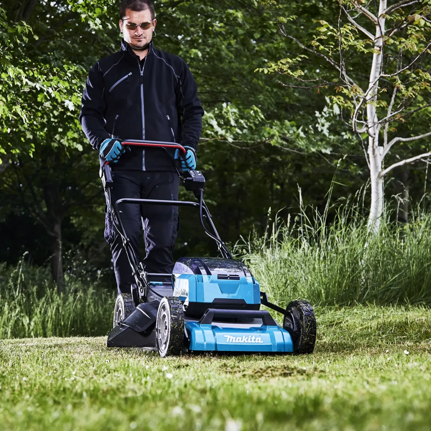 Batteridreven selvkørende og støjsvag plæneklipper med stålskjold og græsopsamler til stører arealer. Maskinen kan monteres med 4 stk. batterier men drives af to 18V LXTbatterier, der yder en spænding på 36V. Ideel til større arealer. Har en klippebredde på 53 cm, græsopsamler og prop for bioklip medfølger.