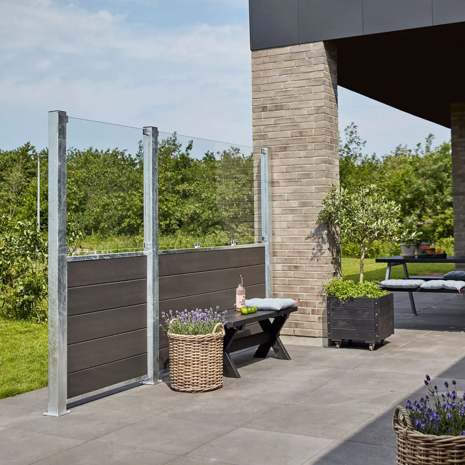 Online Plus Futura komposithegn m/klart glas 180x180 cm skiferfrå