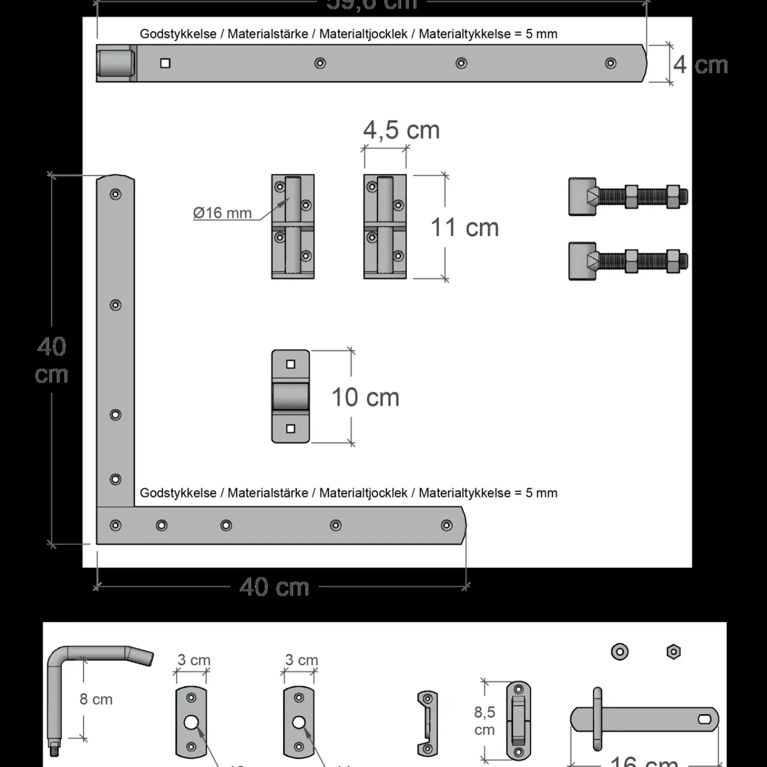 - Vær opmærksom på at, modulet sælges inkl. lågebeslag, bolte og skruer til montering af havelågen.