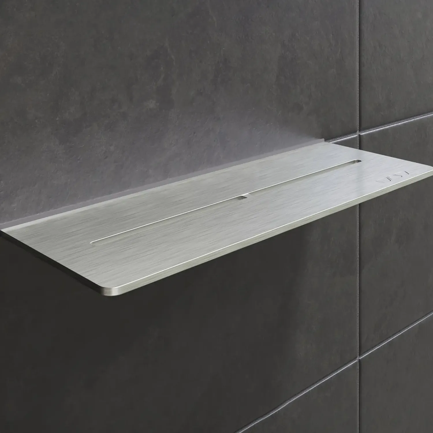 Schlüter-SHELF-W er rektangulære hylder til montering på vægfladen. De fås i designvarianterne FLORAL, CURVE, PURE, SQUARE og WAVE, hver i materialekvaliteterne børstet rustfrit stål og aluminium med TRENDLINE-pulverbelægning af høj kvalitet. De to fastgøringsflige med trapez- perforering integreres i fliseklæberen under opsætningen af fliserne. De egner sig som hylder i bruseområdet, men kan f.eks. også anvendes på flisevægge i små køkkener.