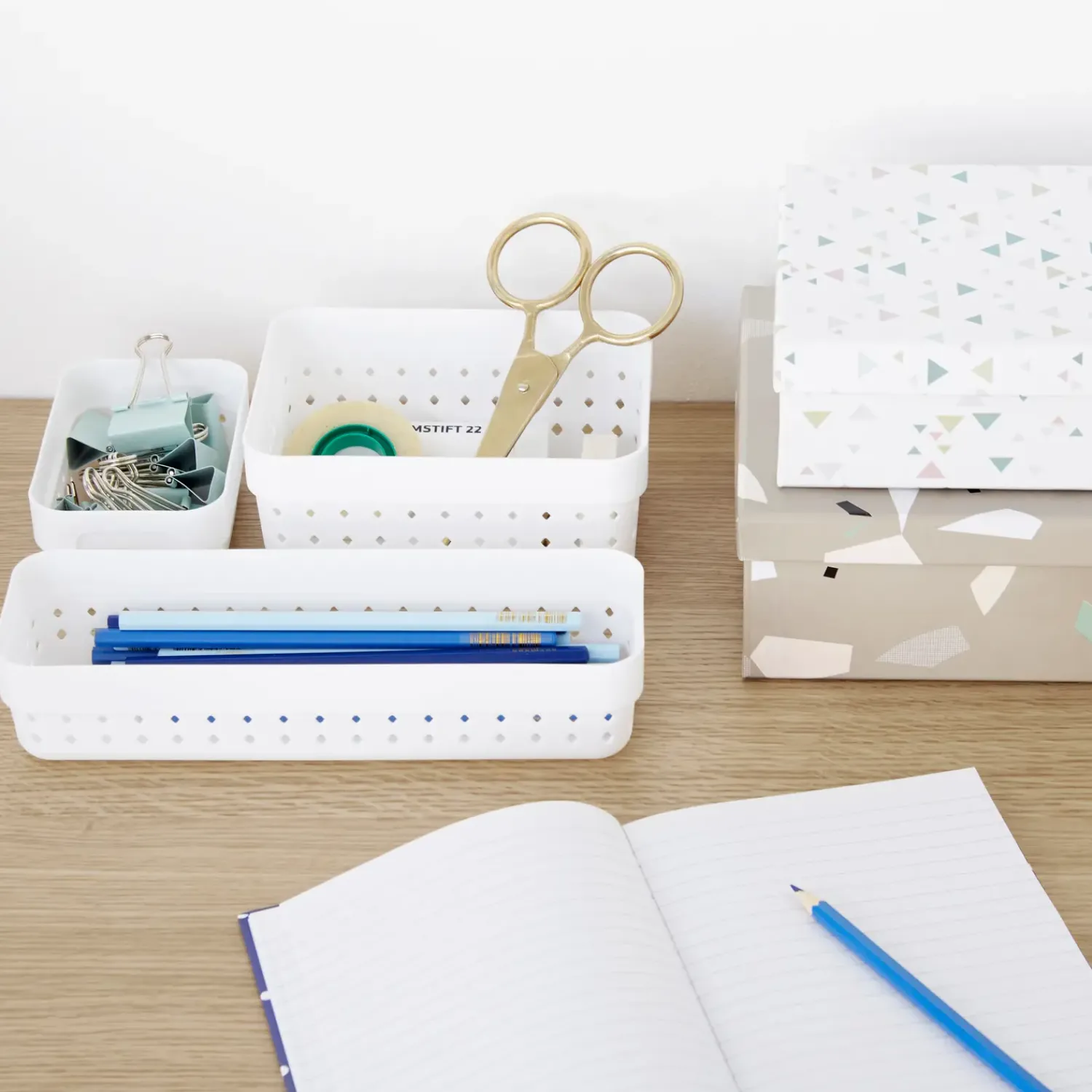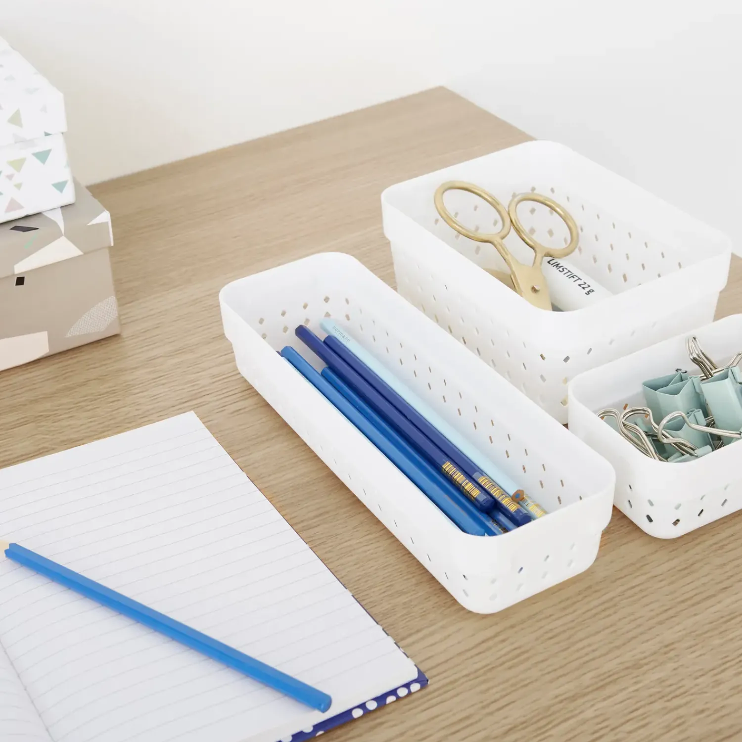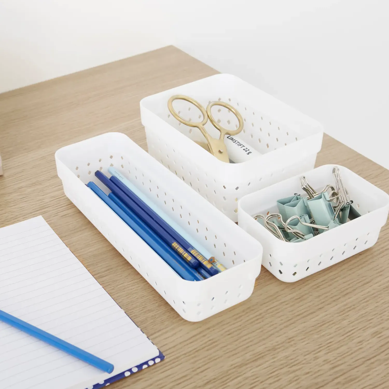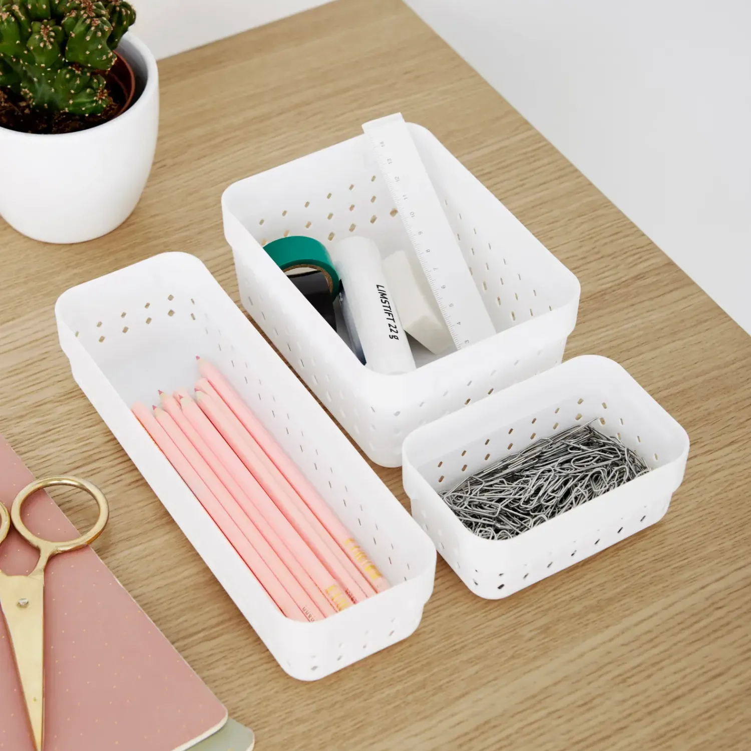 Praktisk små plastkurve der tilbyder et smukt og elegant organiseringssystem til småting, og det passer til ethvert rum i hjemmet. Designet inkluderer diamantformede huller, som tilføjer et moderne look. Kurven af høj kvalitet er ideel til at organisere kuglepenne og andre kontorartikler. Den kan også være ideel til at organisere make-up og andre personlige ting.